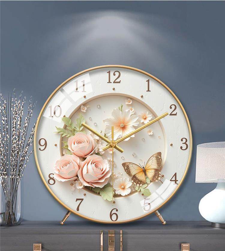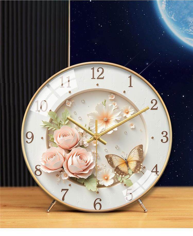 Creative Home Desk Clock Quartz Clock French Butterfly Nordic Clock High-Value Desk Clock Silent Bedroom Living Room