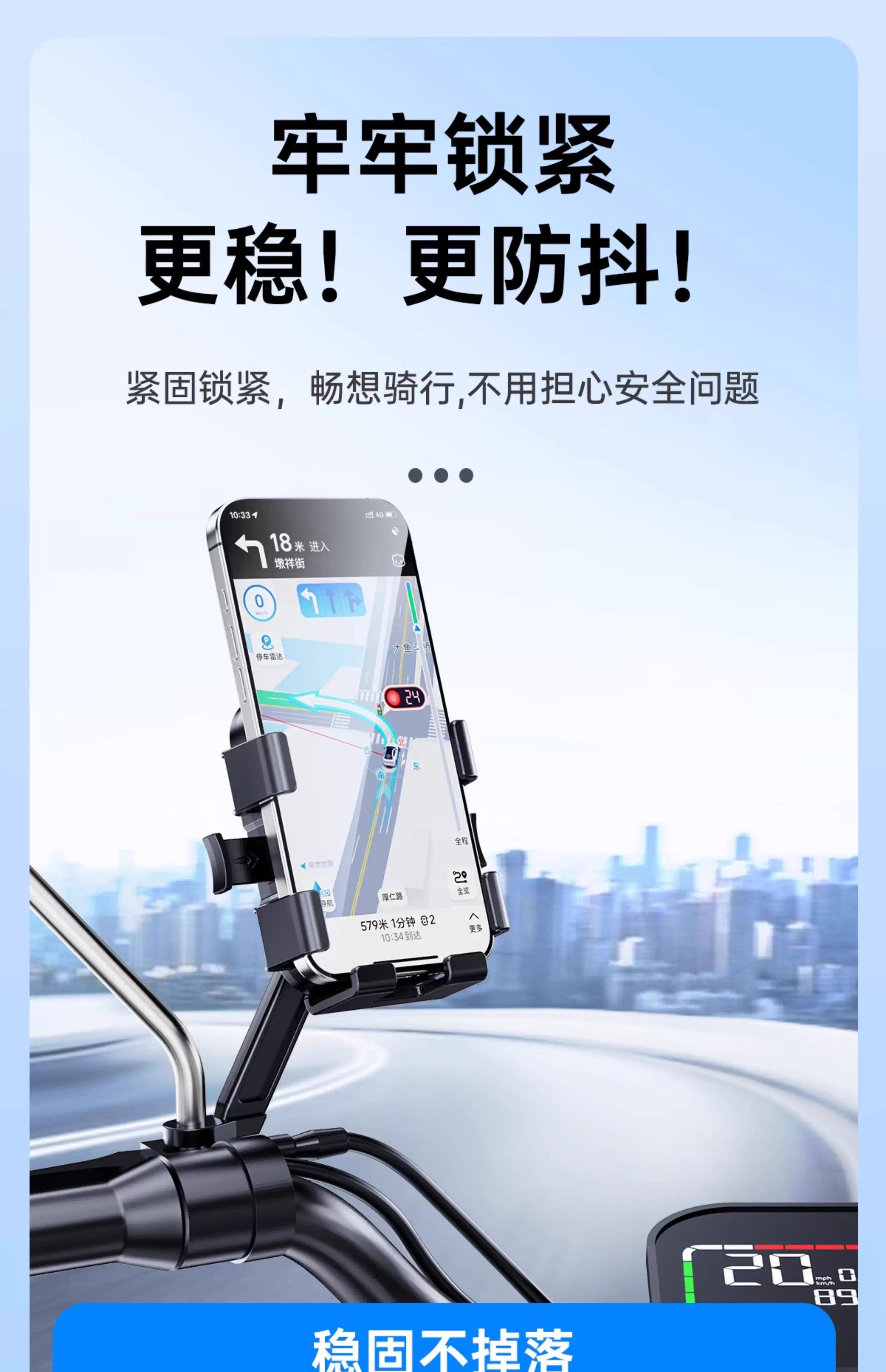 Rider Recommended]2025 New Model Shockproof and Anti-Shake Electric Vehicle Phone Holder for Electric Bicycles, Scooters, and Delivery Riders, Navigation-Specific Rearview Mirror Style Cycling Phone Mount
