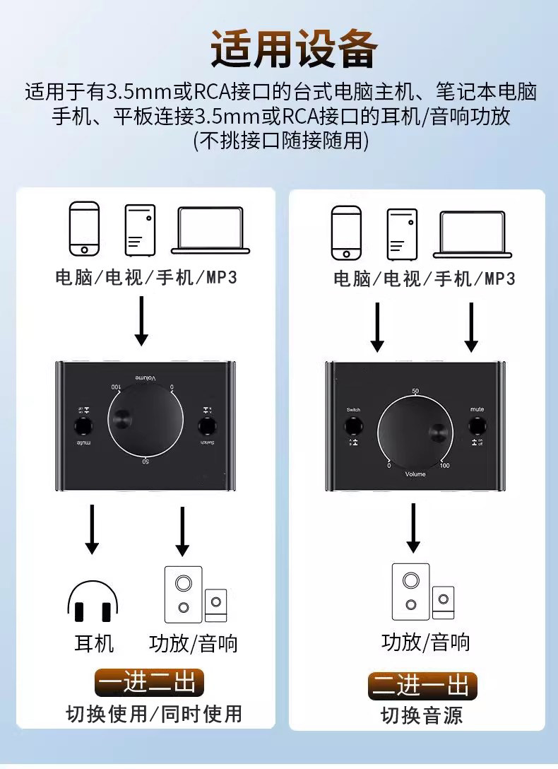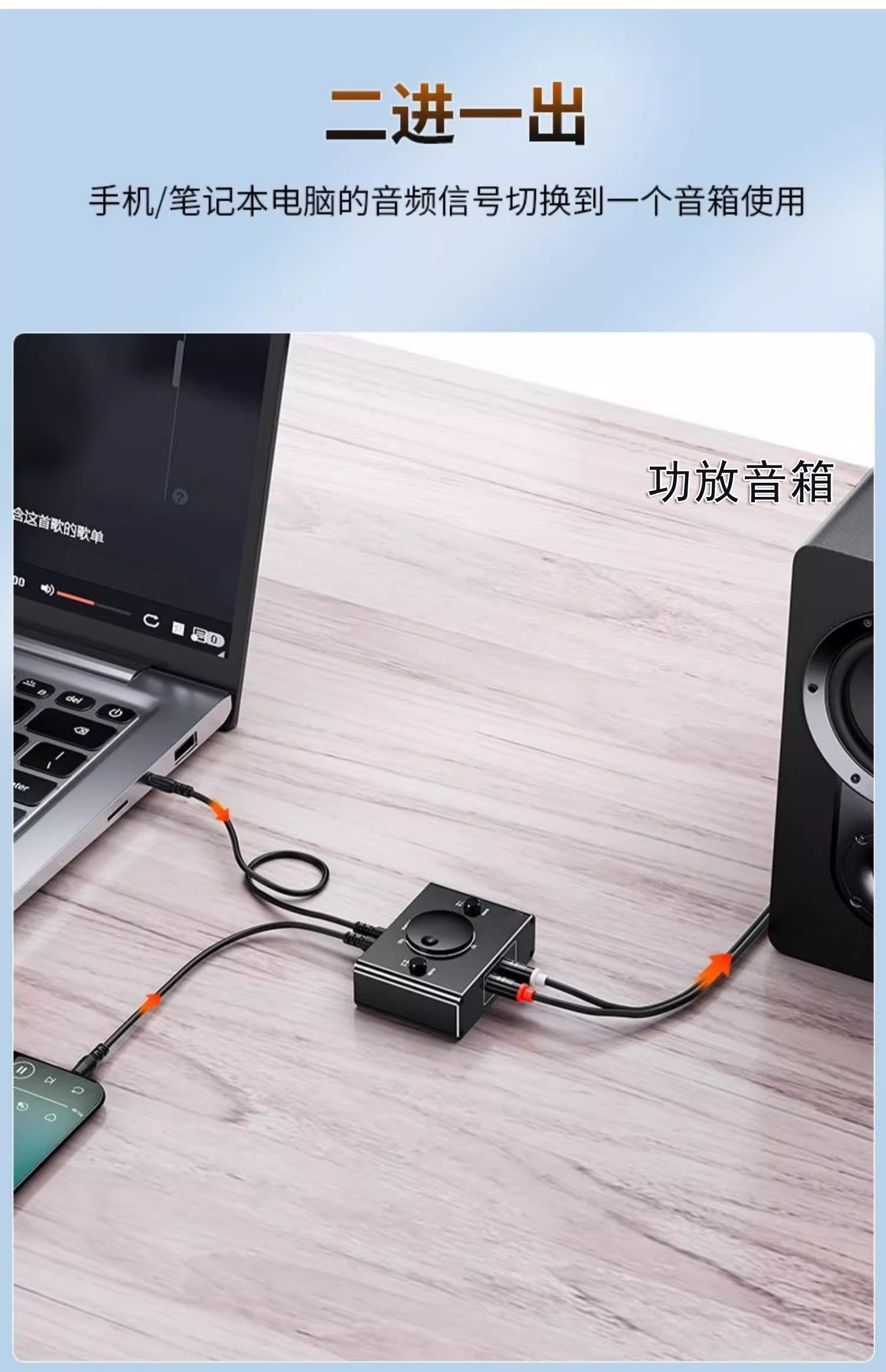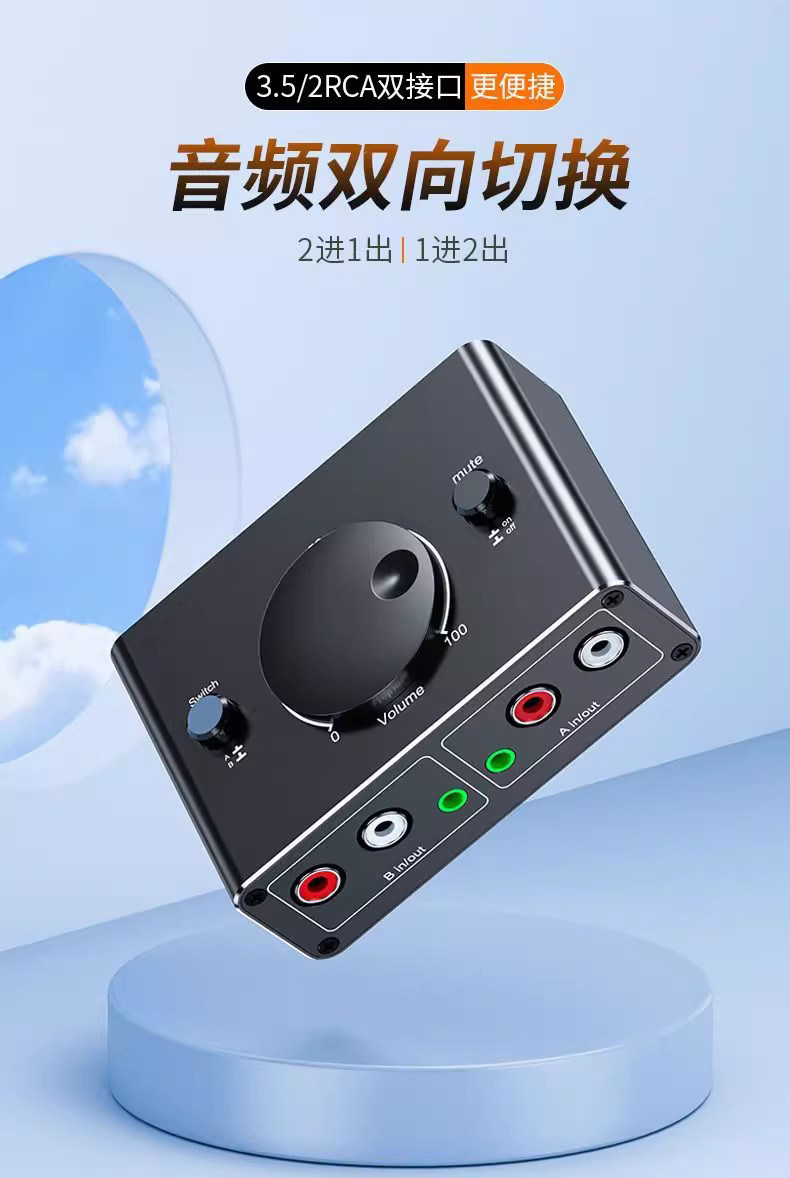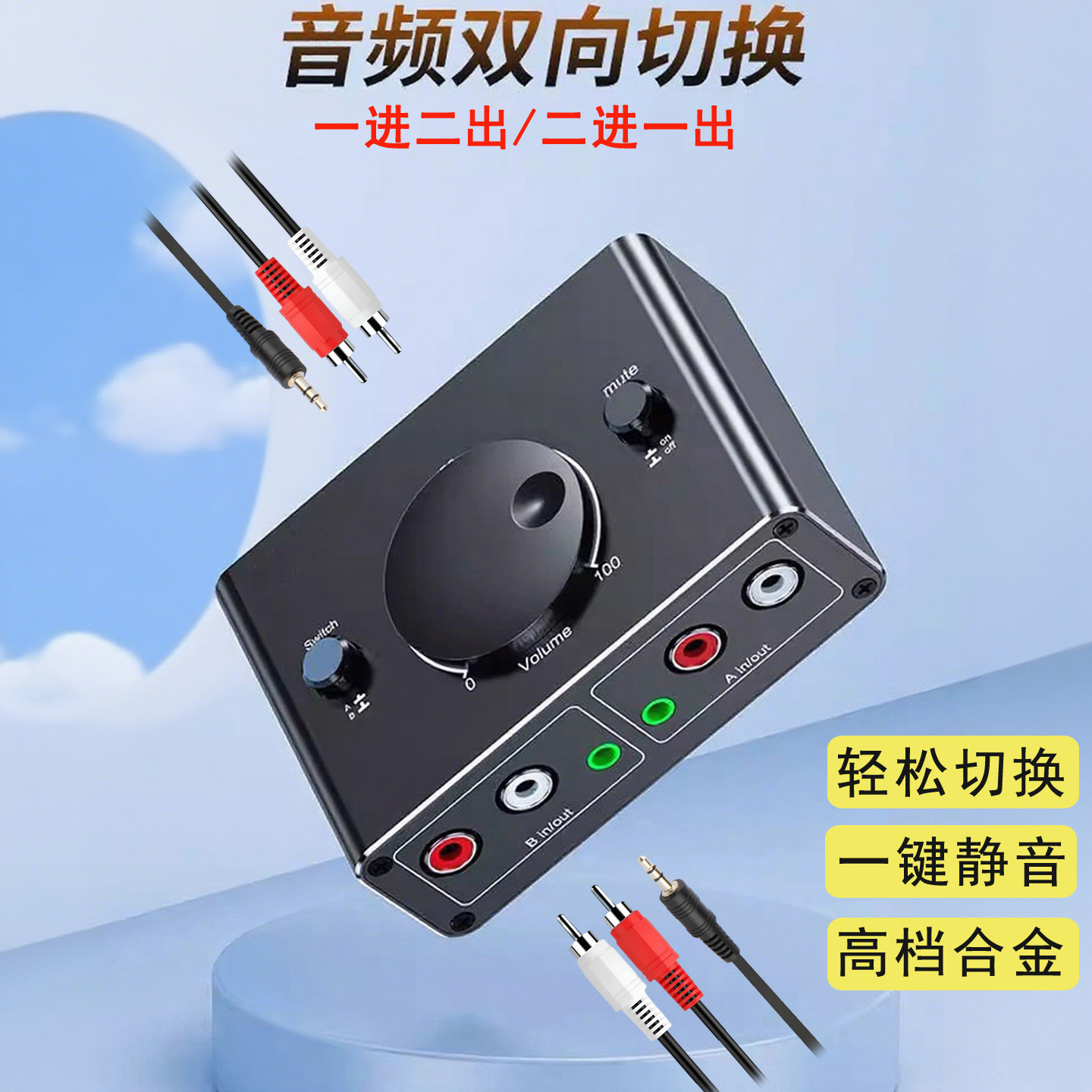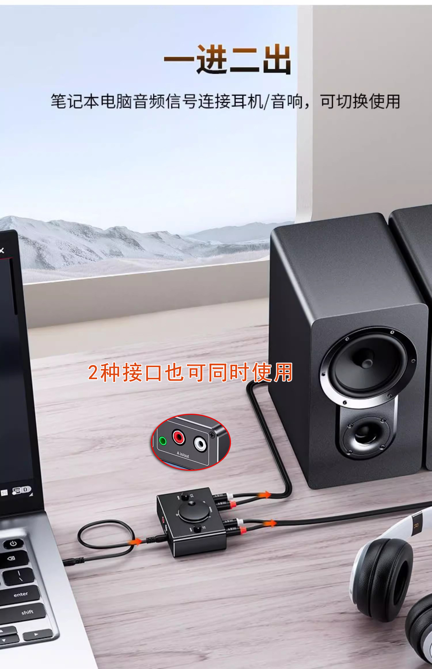 Audio Signal 2Rca Lotus Cable 3.5mm Two-In-One-Out Switcher Computer Tv Speaker Headphones 1 to 2