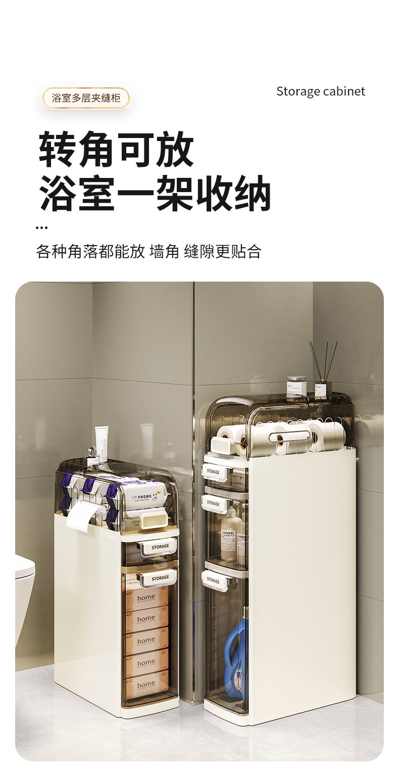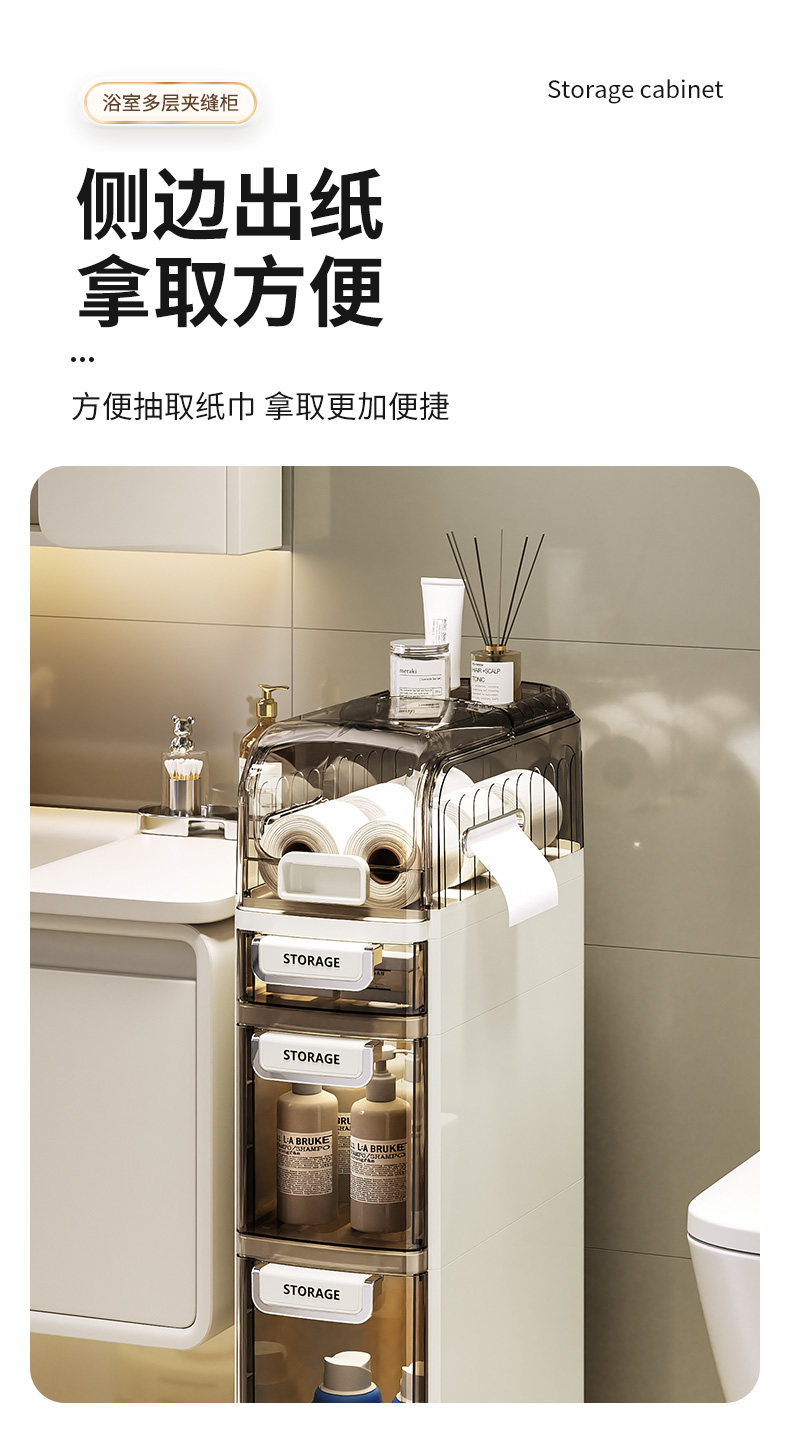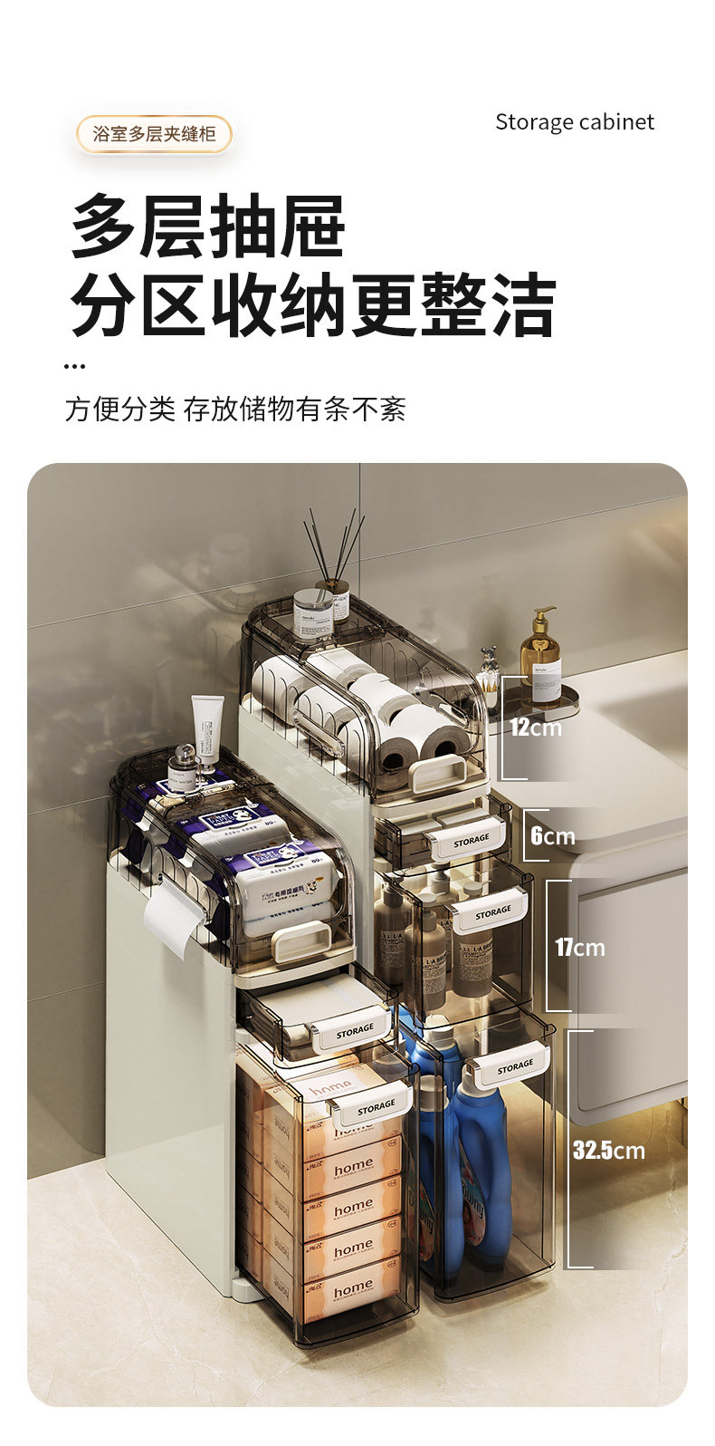 Bathroom Storage Rack, Narrow Gap Storage Cabinet, Ultra-Narrow Gap Toilet Storage Cabinet, Drawer-Type Toilet Side Shelf