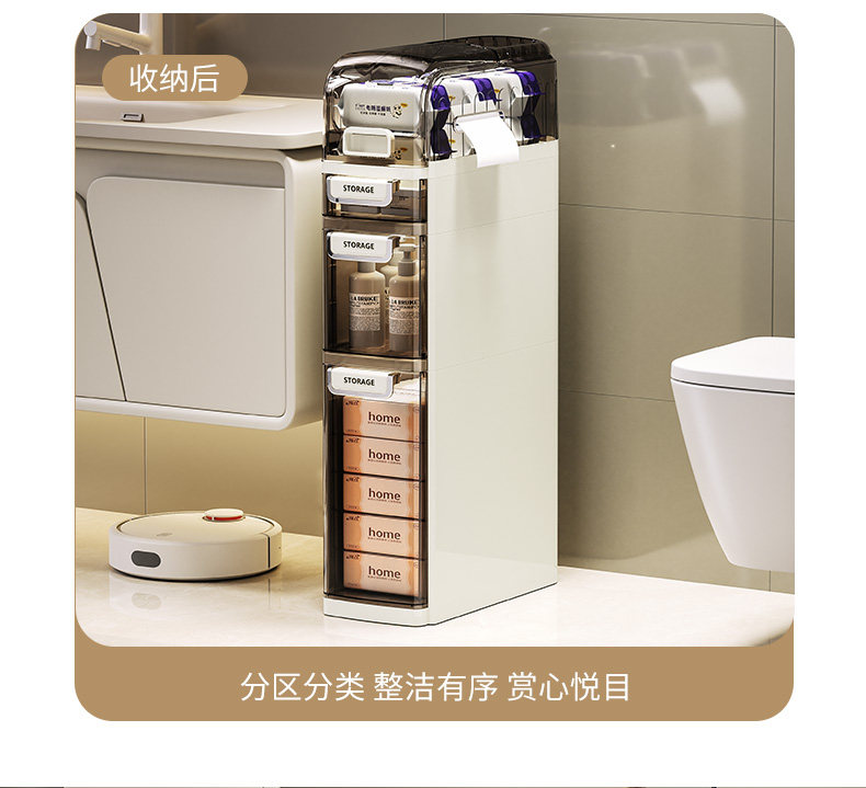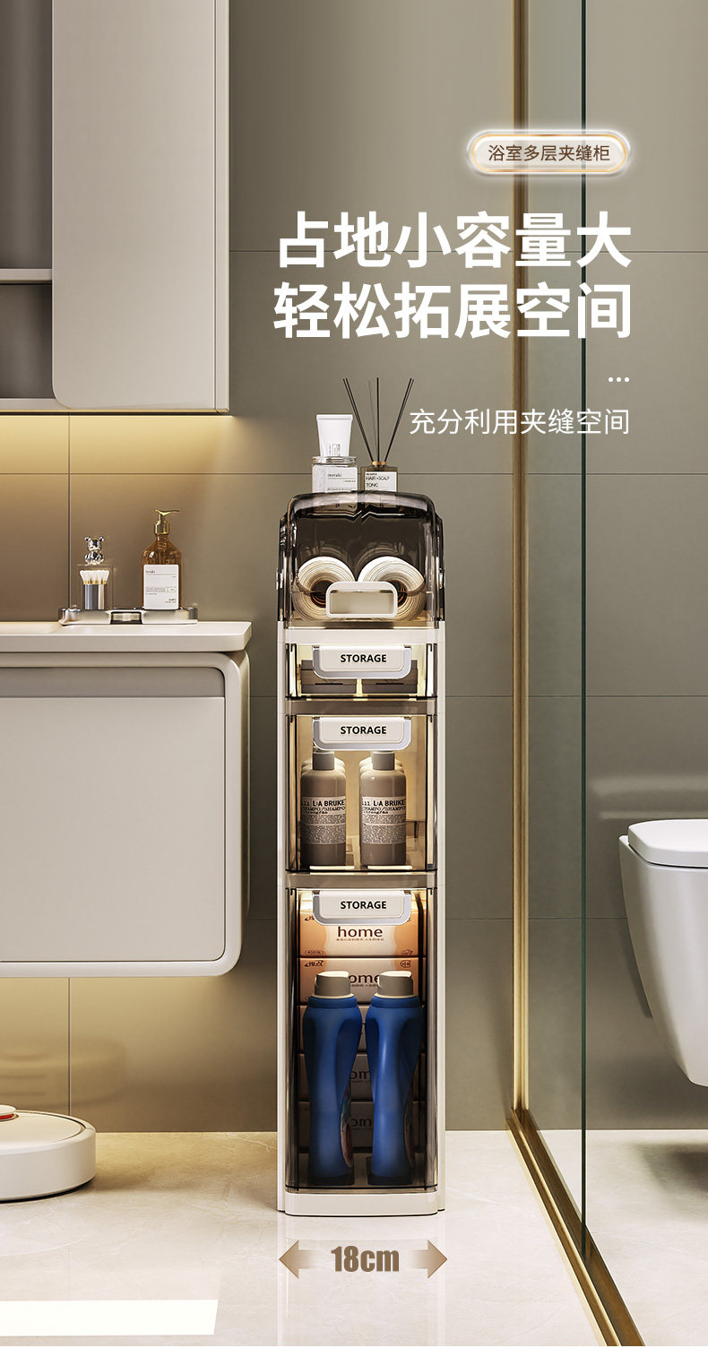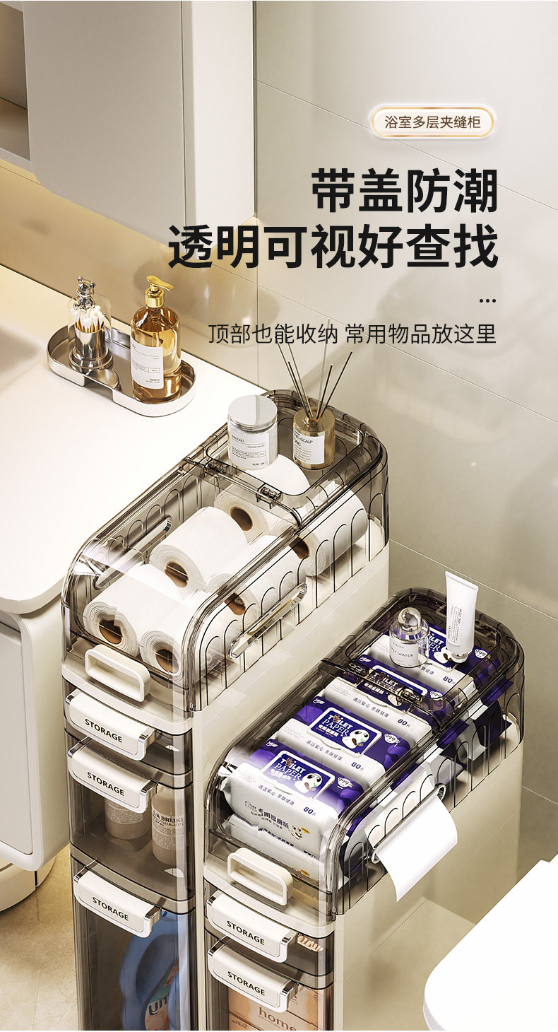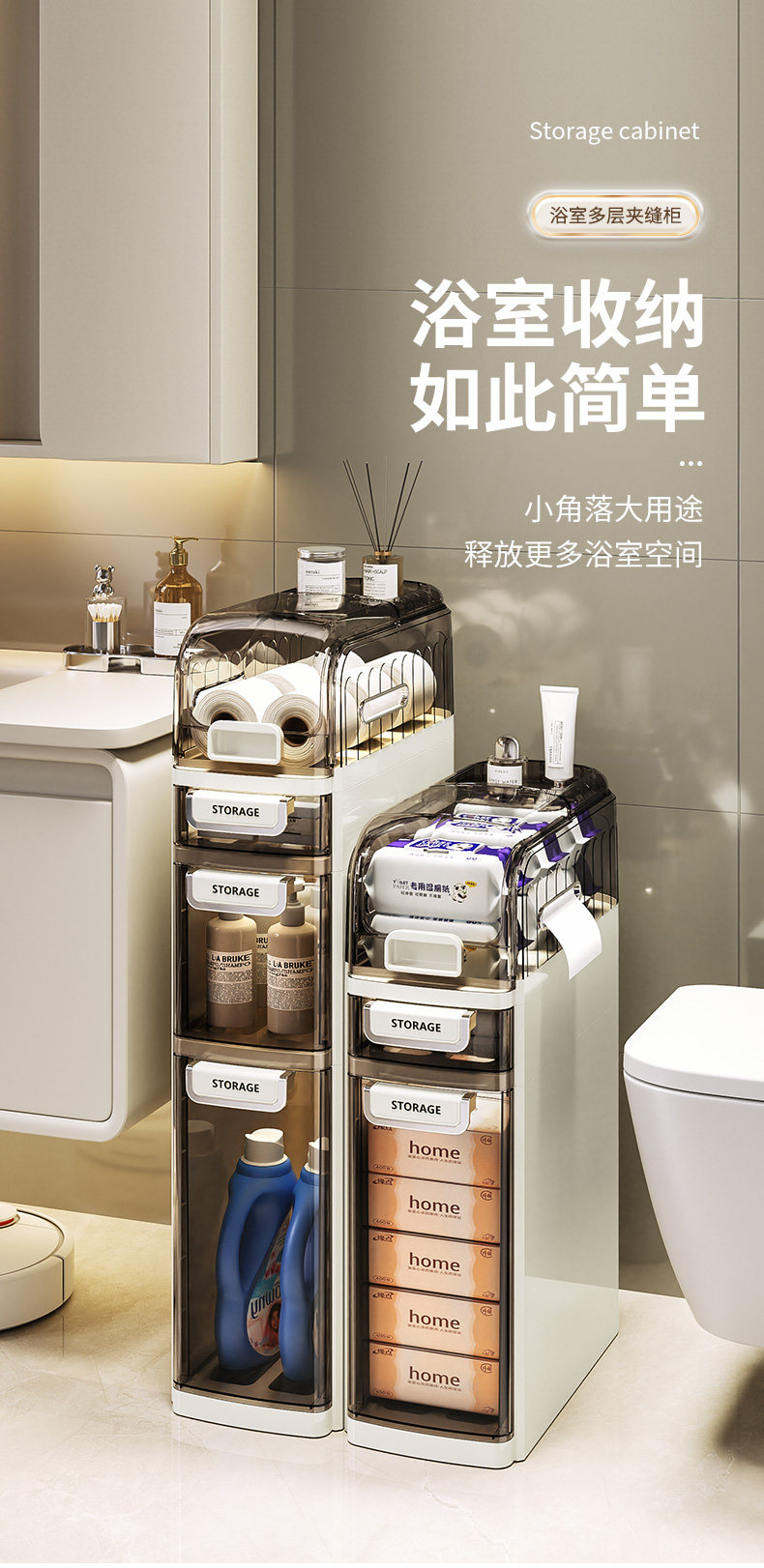 Bathroom Storage Rack, Narrow Gap Storage Cabinet, Ultra-Narrow Gap Toilet Storage Cabinet, Drawer-Type Toilet Side Shelf