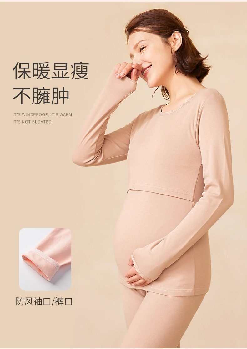 Jingqi Maternity Autumn and Winter Cotton Long Johns Set, Postpartum Nursing Sleepwear, Thermal Underwear for Women
