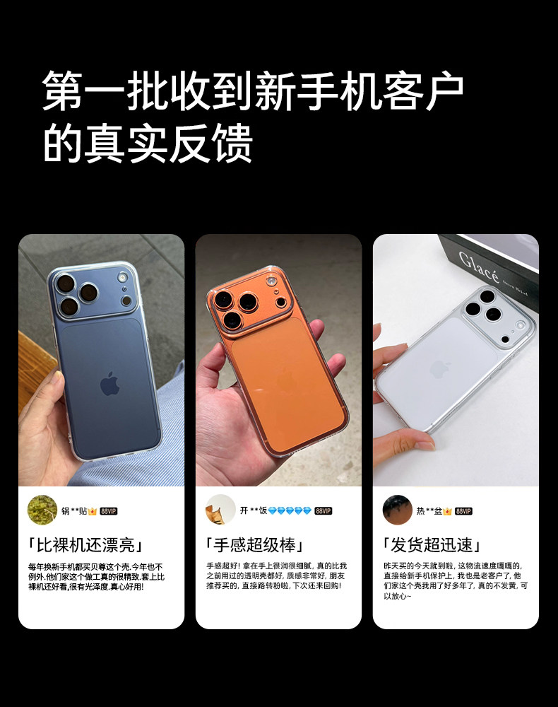 | Color Classification | [Add to Favorites + Add to Cart] Tmall Next Day Delivery★Two-Year Warranty★Free Trial for Thirty Days,[Store Manager’S Promise] Two-Year Warranty | Compensation for Yellowing★,【Crystal Clear】Barely There Transparency | Explosion-Proof & Drop-Resistant☆Really Not Yellowing,【Crystal Clear Case - Desert Gold】Barely There Feel | Explosion-Proof & Drop-Resistant☆Really Not Yellowing,【Crystal Clear Case - Graphite Black】Barely There Feel | Explosion-Proof & Drop-Resistant☆Really Not Yellowing,【Crystal Clear Titanium】Barely There Feel | Explosion-Proof & Drop-Resistant☆Really Not Yellowing,The Following Is the Material Upgrade★Ultra-Thin and Translucent★Brand New Anti-Fall Technology,[Upgraded Fully Transparent] Upgraded Material✅Stronger Anti-Fall✅Transparent and Non-Yellowing,[Transparent Cover Desert Gold Effect] Upgraded Material✅Stronger Anti-Fall✅Transparent and Non-Yellowing,[Transparent Titanium Original Color Effect] Upgraded Material✅Stronger Anti-Fall✅Transparent and Non-Yellowing,[Transparent Cover with Titanium Black Effect] Upgraded Material ✅ Stronger Anti-Fall ✅ Transparent and Non-Yellowing |