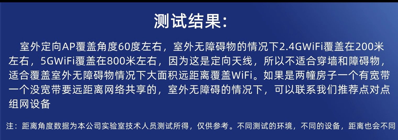 | Color Classification | 180m Omnidirectional Coverage 2.4G,200m Dual Band Directional Relay Coverage,400m Omnidirectional Coverage 5.8G,600m Omnidirectional Coverage 5.8G,800m Omnidirectional Coverage 5.8G,800m Diameter Omnidirectional Coverage 2.4G&5G |
