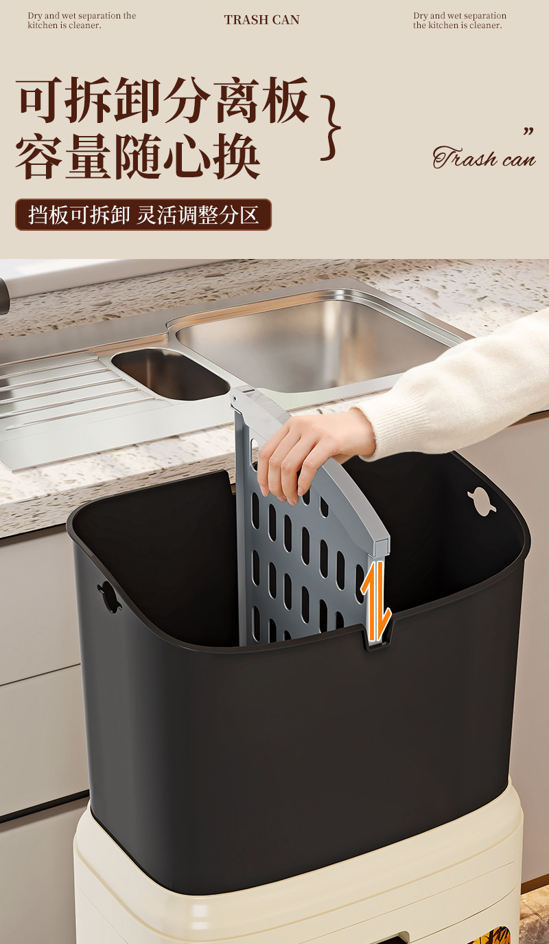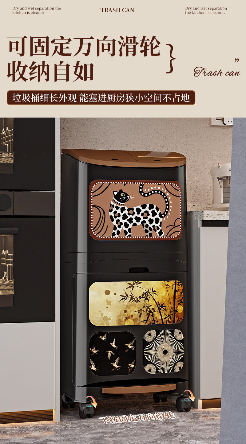 Kitchen Trash Can for Home Use with Lid, 2025 New Model, Japanese Style, Large Capacity, High Model, Odor-Proof, for Separating Dry and Wet Waste