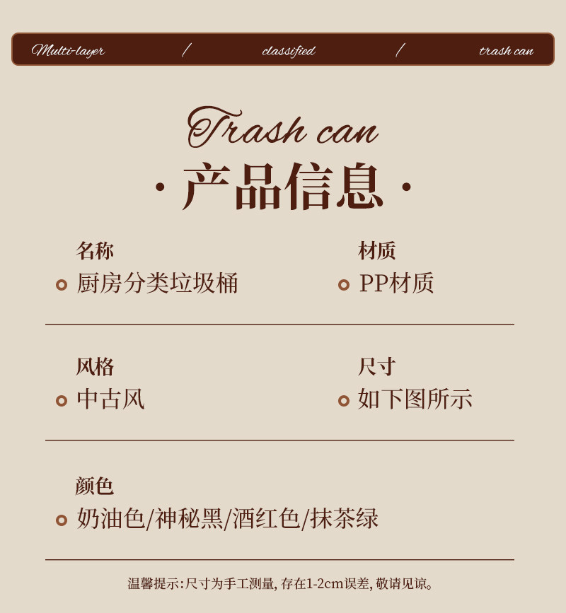 | Color Classification | Milky White Double-Layer Partition Model [Press to Open the Lid + Foot Pedal],Mysterious Black Double-Layer Partition Model [Press to Open the Lid + Foot Pedal],Burgundy Double-Layer Partition Model [Press to Open the Lid + Foot Pedal],Matcha Green Double-Layer Partition Model [Press to Open the Lid + Foot Pedal],Limited Time Promotion: Post Pictures and Get 30% Back |