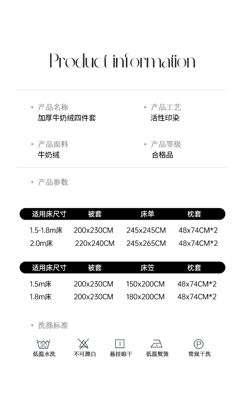 | Applicable Bed Size | 1.5m Bed [Sheet Set of Four] - Suitable for 200X230Cm Quilt Core,1.8m Bed [Sheet Set of Four] - Suitable for 200X230Cm Quilt Core,2.0m Bed [Sheet Set of Four] - Suitable for 220X240Cm Quilt Core,★1.5m Bed [Four-Piece Fitted Sheet Set] - Suitable for 200X230Cm Quilt Core,★1.8m Bed [Four-Piece Fitted Sheet Set] - Suitable for 200X230Cm Quilt Core |