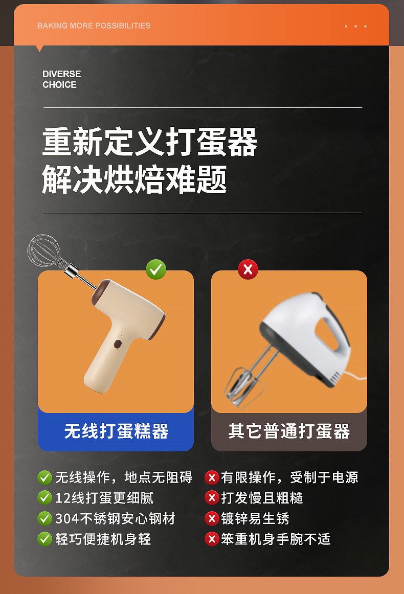 Household Egg Beater Electric Small Wireless Baking Cream Whipper Egg Beater Cake Kitchen Handheld Mixer