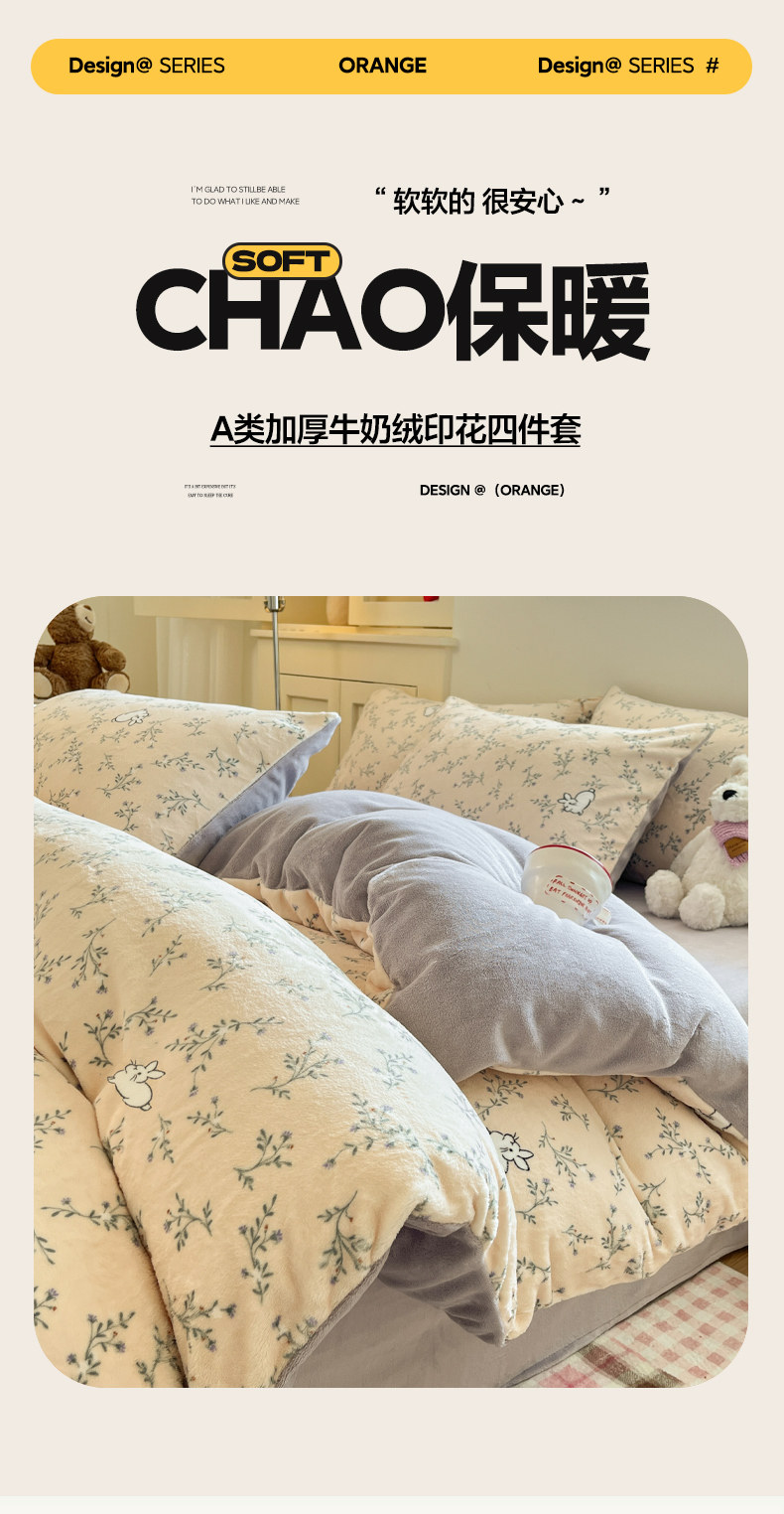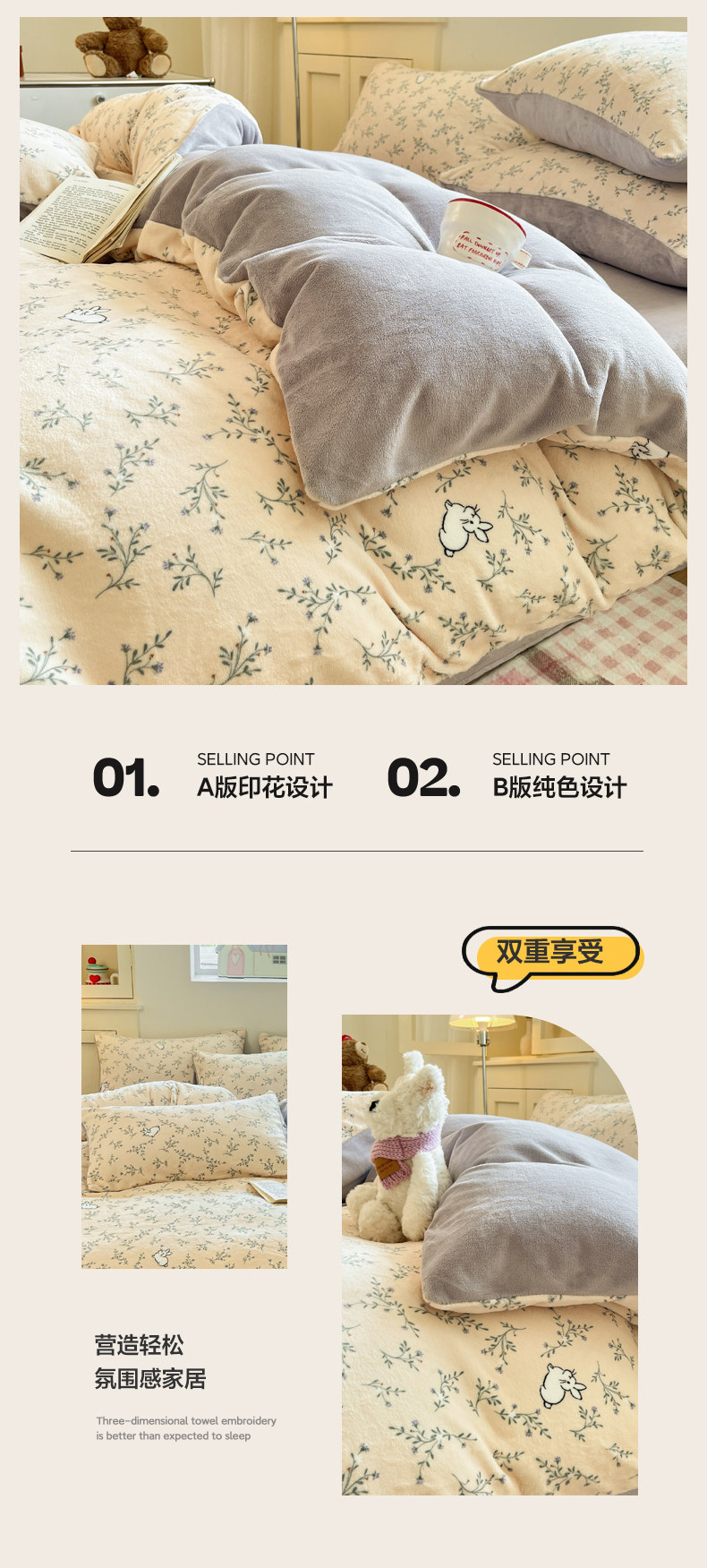 Milk Velvet Four-Piece Bedding Set, Flannel Coral Fleece Duvet Cover, 2025 New Autumn and Winter Thickened Fleece Three-Piece Set