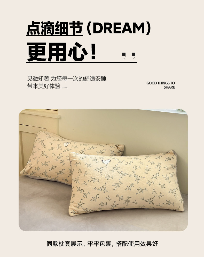 | Applicable Bed Size | 0.9m Student Bed [Three-Piece Bed Sheet Set] - Suitable for 150X200Cm Quilt Core, 160X230Cm Bed Sheet,1.2m Bed [Three-Piece Bed Sheet Set] - Suitable for 150X200Cm Quilt Core, 160X230Cm Bed Sheet,1.5m Bed [Sheet Set of Four] Suitable for 150X200Cm Quilt Core, 200X230Cm Sheets,1.8m Bed [Sheet Set - 4 Piece] Fits 180X220Cm Duvet Insert, 230X230Cm Sheet,1.5/1.8m Bed [Sheet Set of Four] Suitable for 200X230Cm Quilt Core, 230X230Cm Sheets,2.0m Bed [Sheet Set of Four] Suitable for 220X240Cm Quilt Core, 230X250Cm Sheets,2.2m Bed [Sheet Set of Four] - Suitable for 220X240Cm Quilt Core, 230X250Cm Sheets,[Four-Piece Fitted Sheet Set] 1.5m Bed Suitable for 200X230Cm Quilt Core, 150X200Cm Fitted Sheet,[Four-Piece Fitted Sheet Set] 1.8m Bed Suitable for 200X230Cm Quilt Core, 180X200Cm Fitted Sheet |