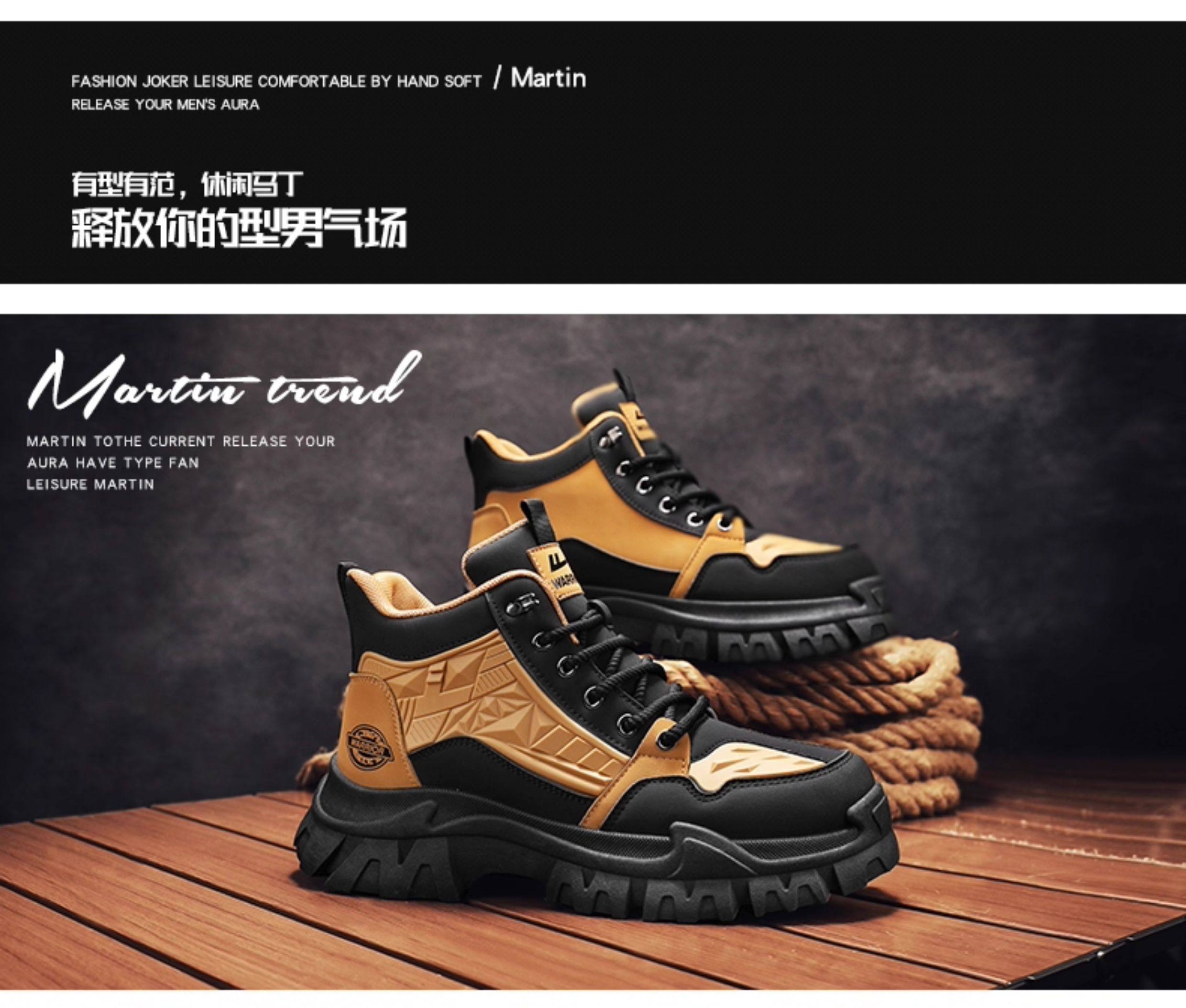 Pull-Back Martin Boots for Men, 2025 New Autumn Retro Height-Increasing Work Boots, Men's Non-Slip Safety Desert Leather Boots
