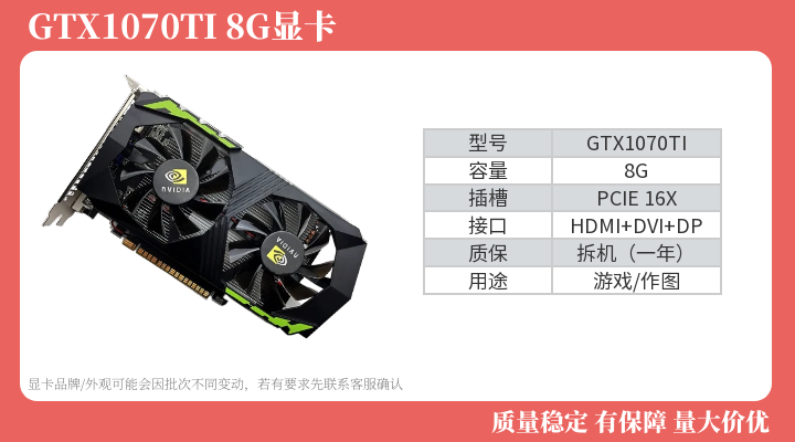 | Color Classification | Gt210 1g Graphics Card (New),Hd6770 1g Graphics Card (New),Gt740 2g Graphics Card (New),Gt730 4g Graphics Card (New),Gtx750 4g Graphics Card (New),Gtx750Ti 4g Graphics Card (New),Gtx1050 4g Graphics Card (New),Gtx950 2g Graphics Card (Disassembled),Gtx960 2g Graphics Card (Disassembled),Gtx960 4g Graphics Card (Disassembled),Gtx1050Ti 4g Graphics Card (Disassembled),Gtx1060 3g Graphics Card (Disassembled),Gtx1060 5g Graphics Card (Disassembled),Gtx1060 6g Graphics Card (Disassembled),Gtx1660Ti 6g Graphics Card (Disassembled),Gtx1070 8g Graphics Card (Disassembled),Gtx1070Ti 8g Graphics Card (Disassembled),Rtx2060 6g Graphics Card (Disassembled) |