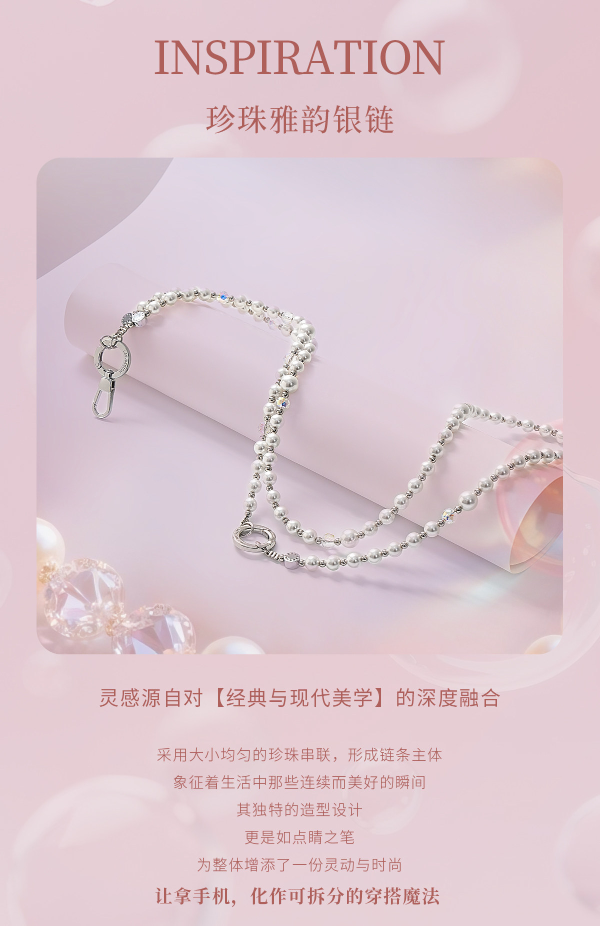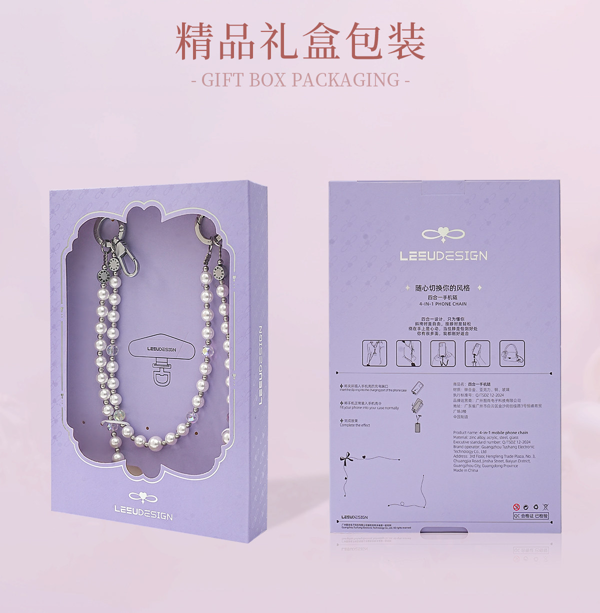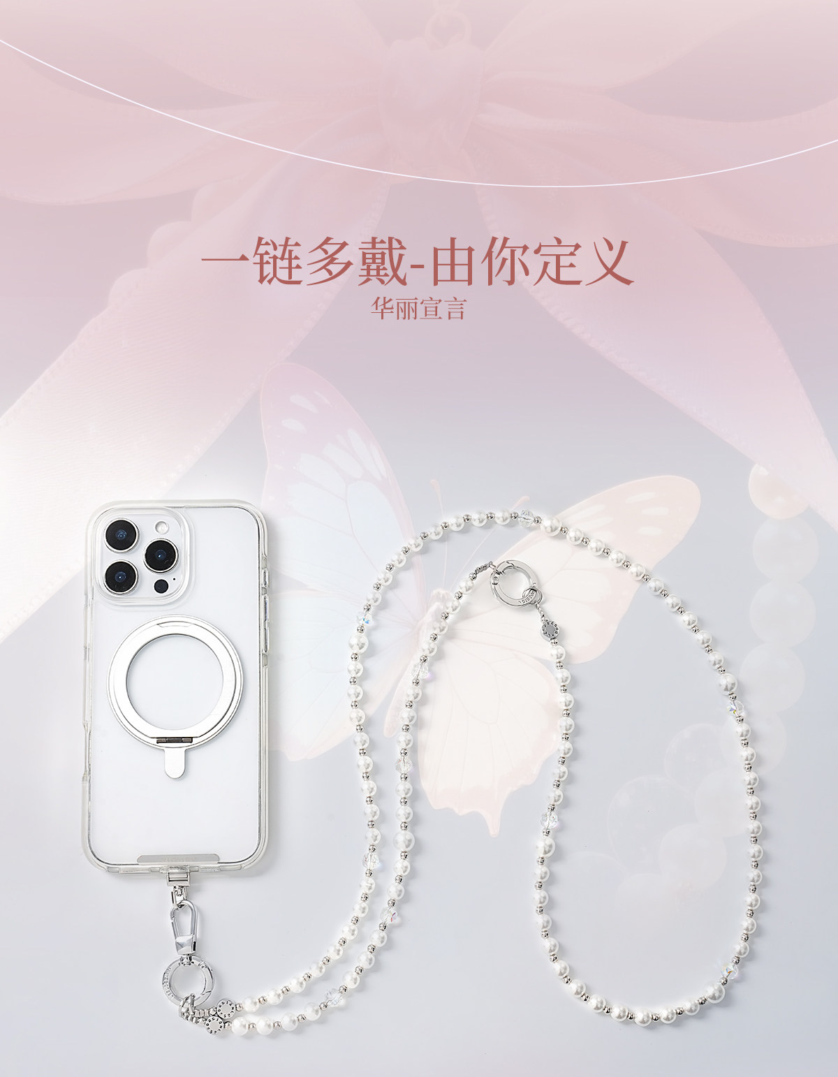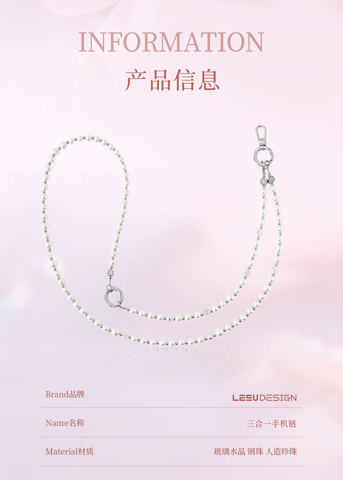 Leeudesign Niche Designer Three-In-One Phone Chain, High-End Luxury, Beautiful White Pearl Crossbody Long Chain, Detachable Wrist Strap, Neck Strap, Phone Lanyard, Anti-Lost Accessory for Women
