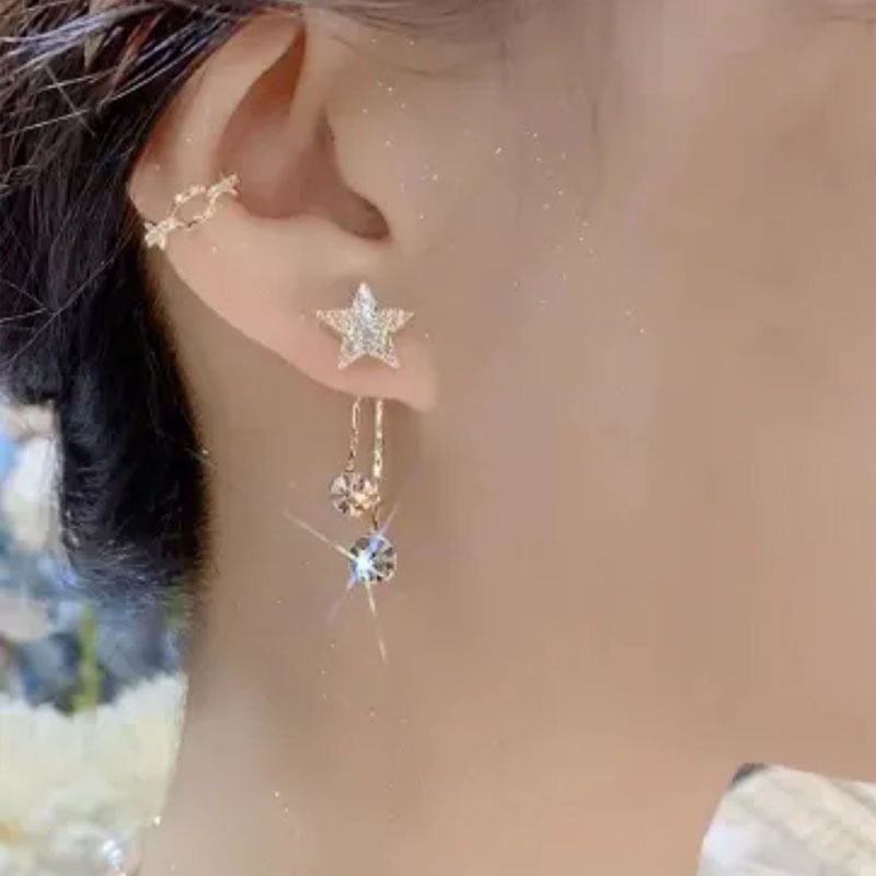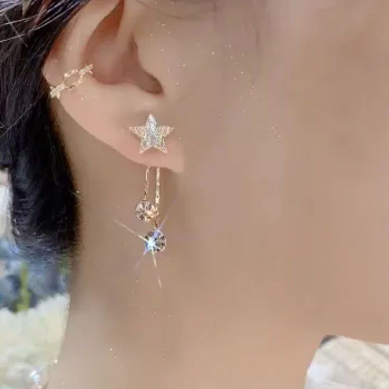 Japanese Premium New Model 925 Silver Needle Micro-Inlaid Star Tassel Earrings, New Japanese and Korean Exquisite Rhinestone Simple and Fashionable Design