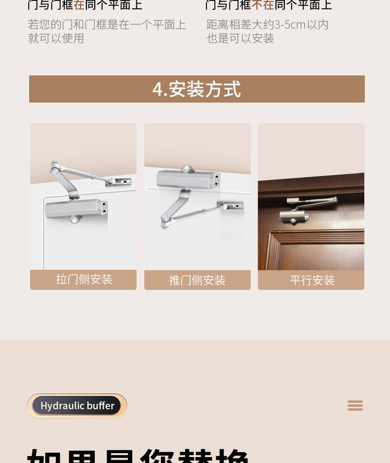 | Color Classification | [Project Payment]Suitable for Door Weights of 15-45kg, Silver, Small Size, Non-Positioning,[Project Payment]Suitable for Door Weight 40-85kg, Silver Medium Size, Non-Positioning,[Project Payment]Suitable for Door Weight 60-85kg, Silver Large Size, Non-Positioning,[Quality Model]Suitable for Door Weights of 15-45kg, Silver, Small Size, Non-Positioning,[Quality Model]Suitable for Door Weight 40-85kg, Silver Medium Size, Non-Positioning,[Quality Model]Suitable for Door Weight 60-85kg, Silver Large Size, Non-Positioning,[Quality Model]Suitable for Door Weights of 15-45kg, Black, Small Size, Non-Positioning,[Quality Model]Suitable for Door Weights of 40-85kg, Black, Medium Size, Non-Positioning,[Quality Model]Suitable for Door Weight 60-85kg, Black Large Size, Non-Positioning,[Project Payment]Suitable for Door Weights of 15-45kg, Silver, Small Size, with Positioning,[Project Payment]Suitable for Door Weight 40-85kg, Silver Medium Size Positioning,[Project Payment]Suitable for Door Weight 60-85kg Silver Large Size Positioning,[Quality Model]Suitable for Door Weights of 15-45kg, Silver, Small Size, with Positioning,[Quality Model]Suitable for Door Weight 40-85kg, Silver Medium Size Positioning,[Quality Model]Suitable for Door Weight 60-85kg Silver Large Size Positioning,[Quality Model]Suitable for Door Weights of 15-45kg, Black, Small Size, with Positioning,[Quality Model]Suitable for Door Weight 40-85kg Black Medium Size Positioning,[Quality Model]Suitable for Door Weight 60-85kg Black Large Size Positioning |