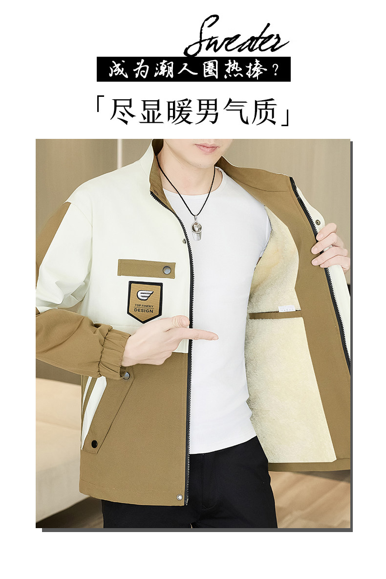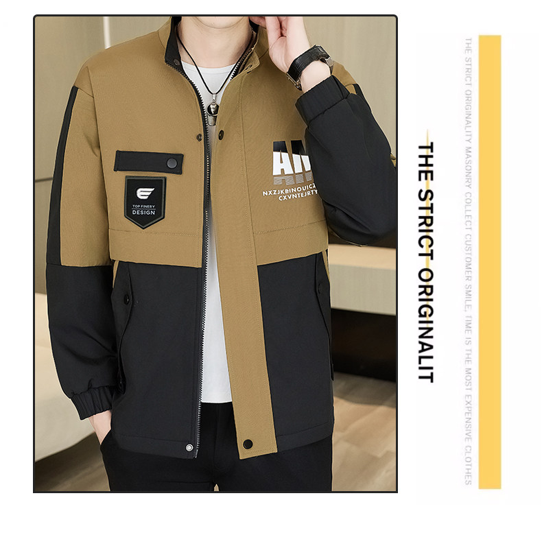 Fleece-Lined and Thickened Men's Cotton Jacket, Winter Trendy Korean Style Stand-Up Collar Cotton Coat, Windproof, Waterproof, Warm Men's Cotton Clothing