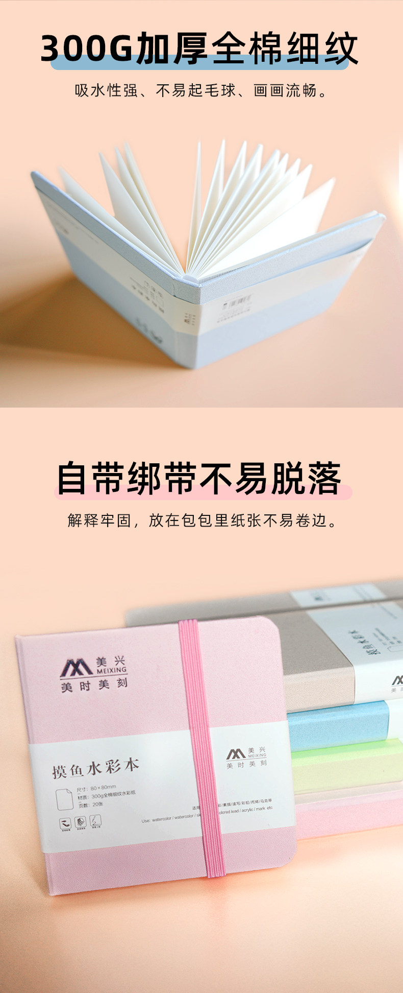 Meixing 100% Cotton Watercolor Notebook, 300g, Fine-Grained, Compact, Portable Accordion-Style Notebook, Fabric Folding Journal, Medium-Thick Square Pocket Watercolor Paper, Beginner's Drawing Notebook, Watercolor Painting Notebook, Special for Art Students