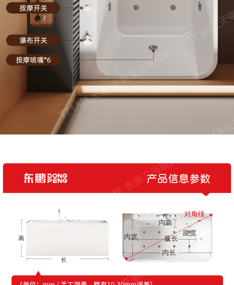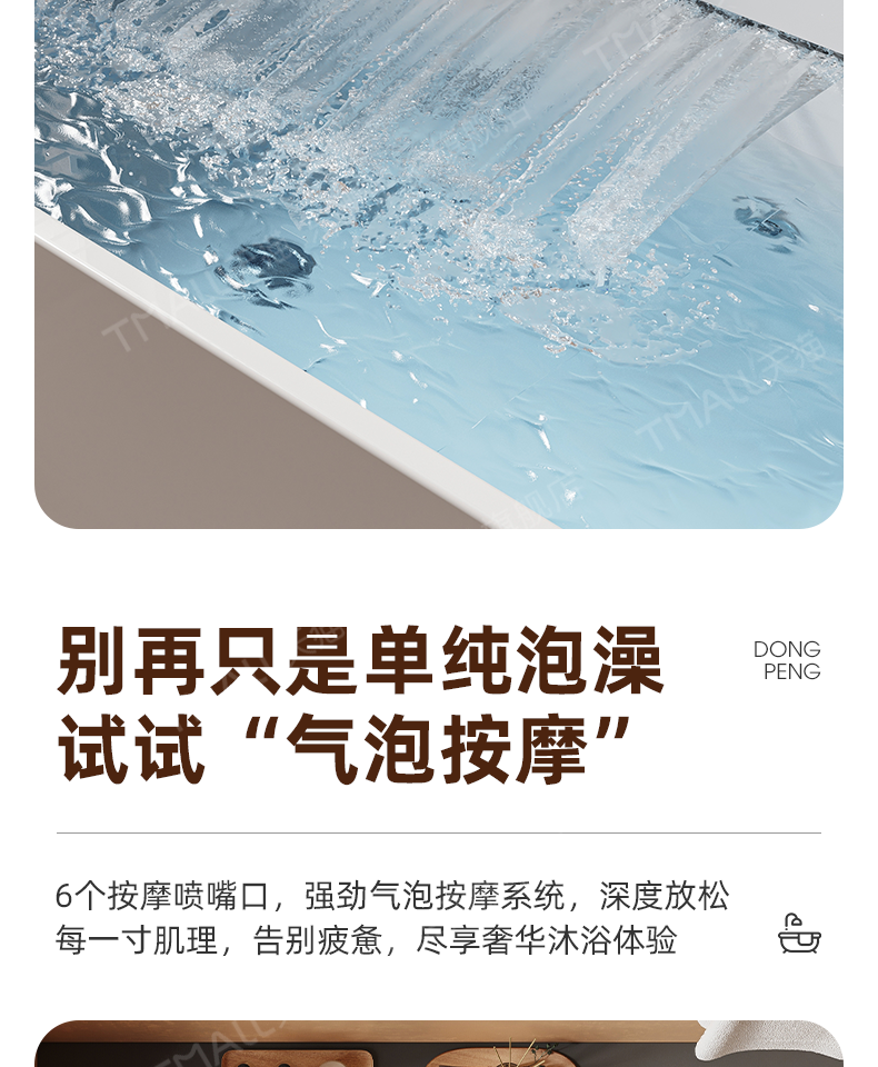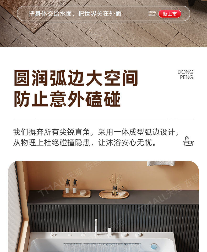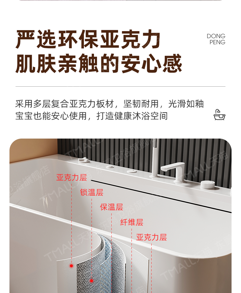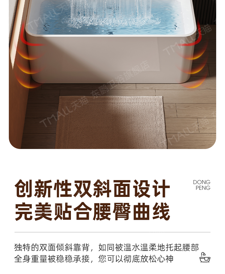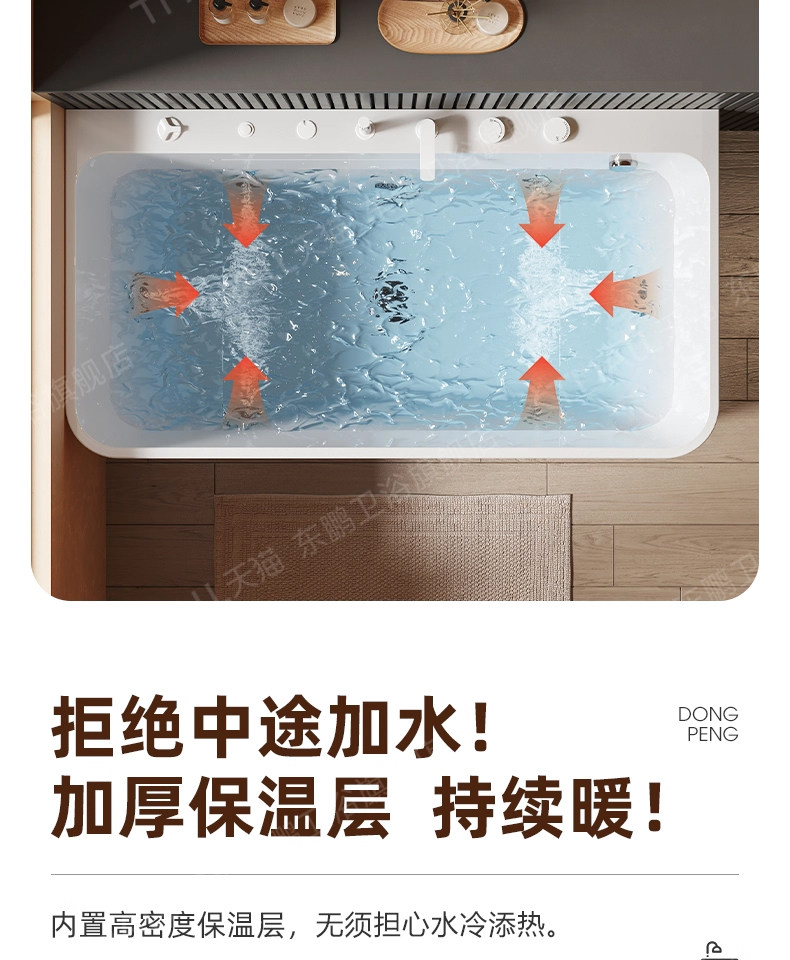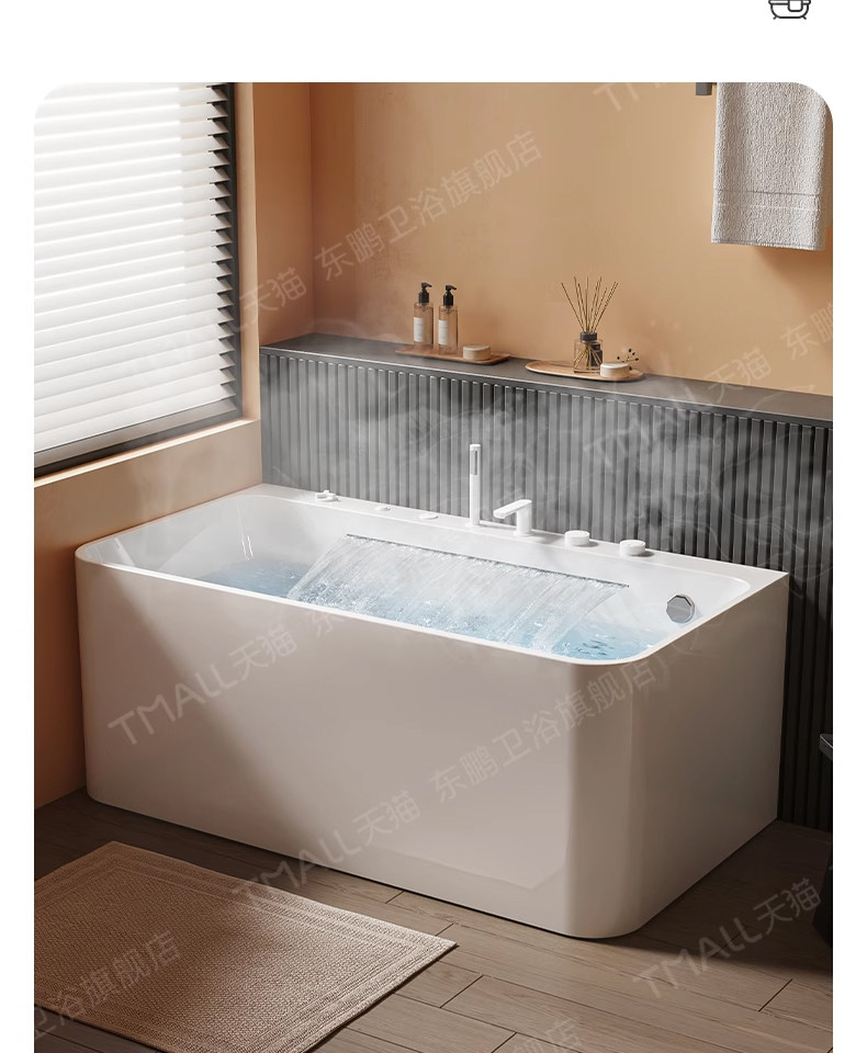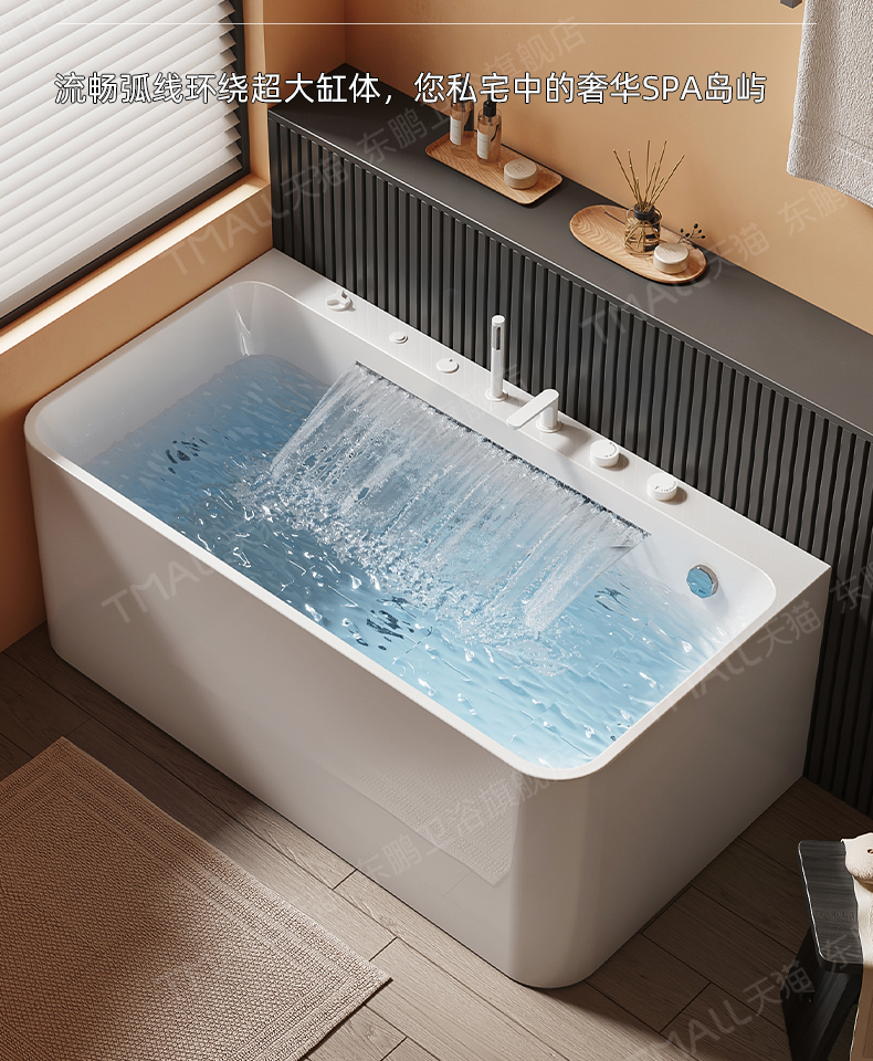Dongpeng Curved Edge Bathtub, Home-Use Large Waterfall Acrylic Square Surf Massage Adult Freestanding Japanese-Style Soaking Tub
