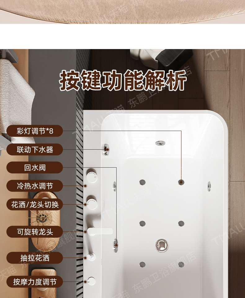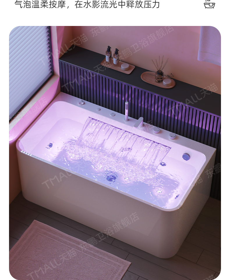 | Color Classification | Empty Cylinder (Linked to Water) 8016,Hardware Cylinder (Faucet + Linked Drain) 8016,Grand Falls Massage Tub (Grand Falls + Surf Massage + Linked Drainage) 8016,Waterfall Bubble Massage Bathtub (Colorful Lights + Waterfall + Surf Massage + Linked Drain) 8016,New Arrival: Curved-Edge Bathtub |