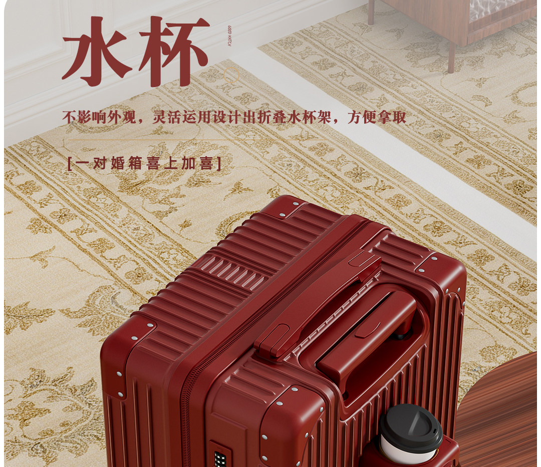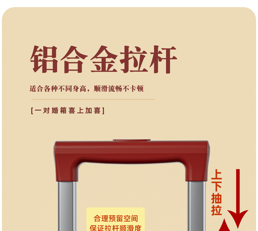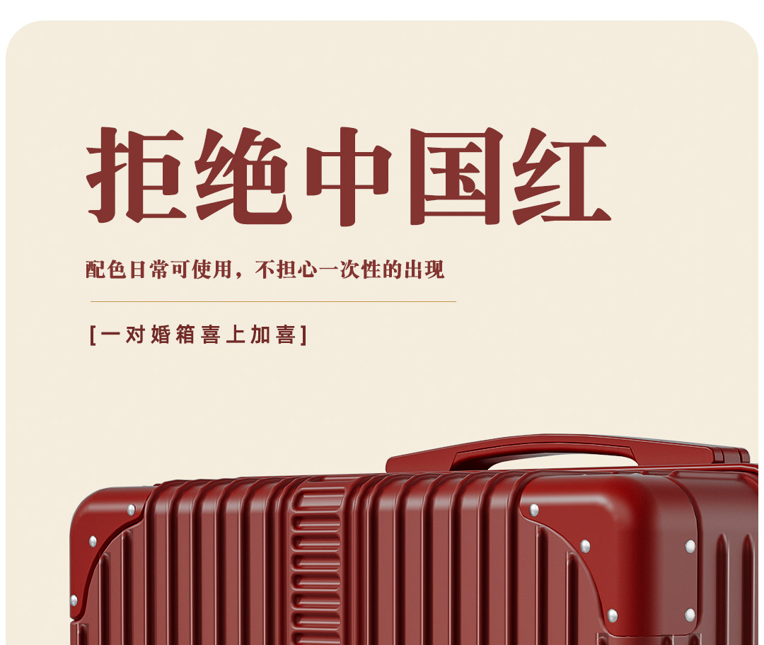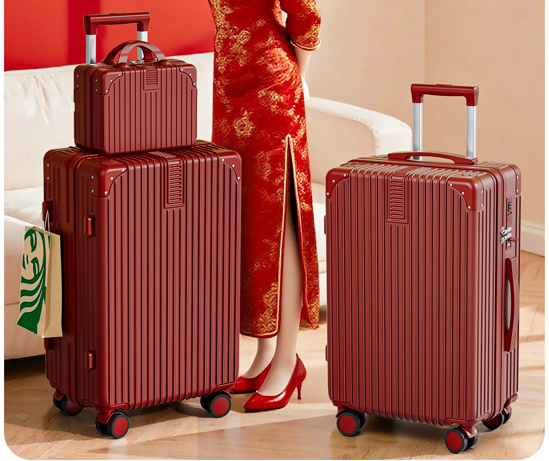 Red Suitcase for Wedding Dowry, Specifically for the Bride, with a High-End Feel, Thickened and Durable, 24inch-Piece Travel Luggage Set with Combination Lock