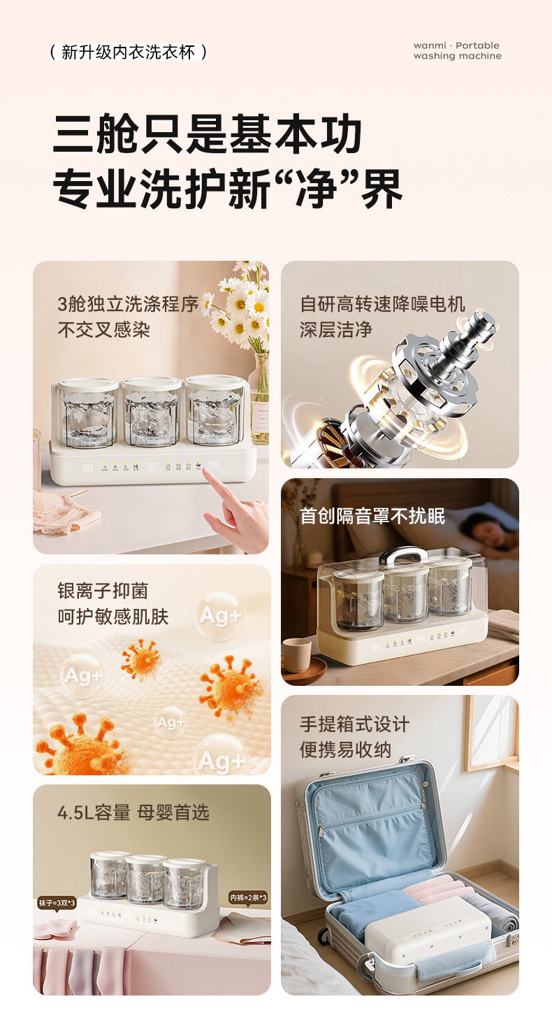 | Color Classification | [Hot Deal Alert]Order Now and Get a Free Noise Reduction Cover!,[Exclusive on the Entire Network]Wanmi's First Three-Cup Intimates Laundry Cup◉Recommended by over a Hundred Bloggers and Influencers,[Exclusive Patent]Nationally Certified Special Soundproof Cover,☆Upgrade the Baby Capsule☆Special Program for Removing Complementary Food Stains/Milk Stains for Women/Men/Babies, a Must-Have for Maternal and Infant Families,[1 Unit > 3 Units] Swap and Wash with Ease, Customize Your Zones! No More Waiting in Line for the Family. Perfect for the Discerning Single, Couples, Families, and Even Those with Babies! |