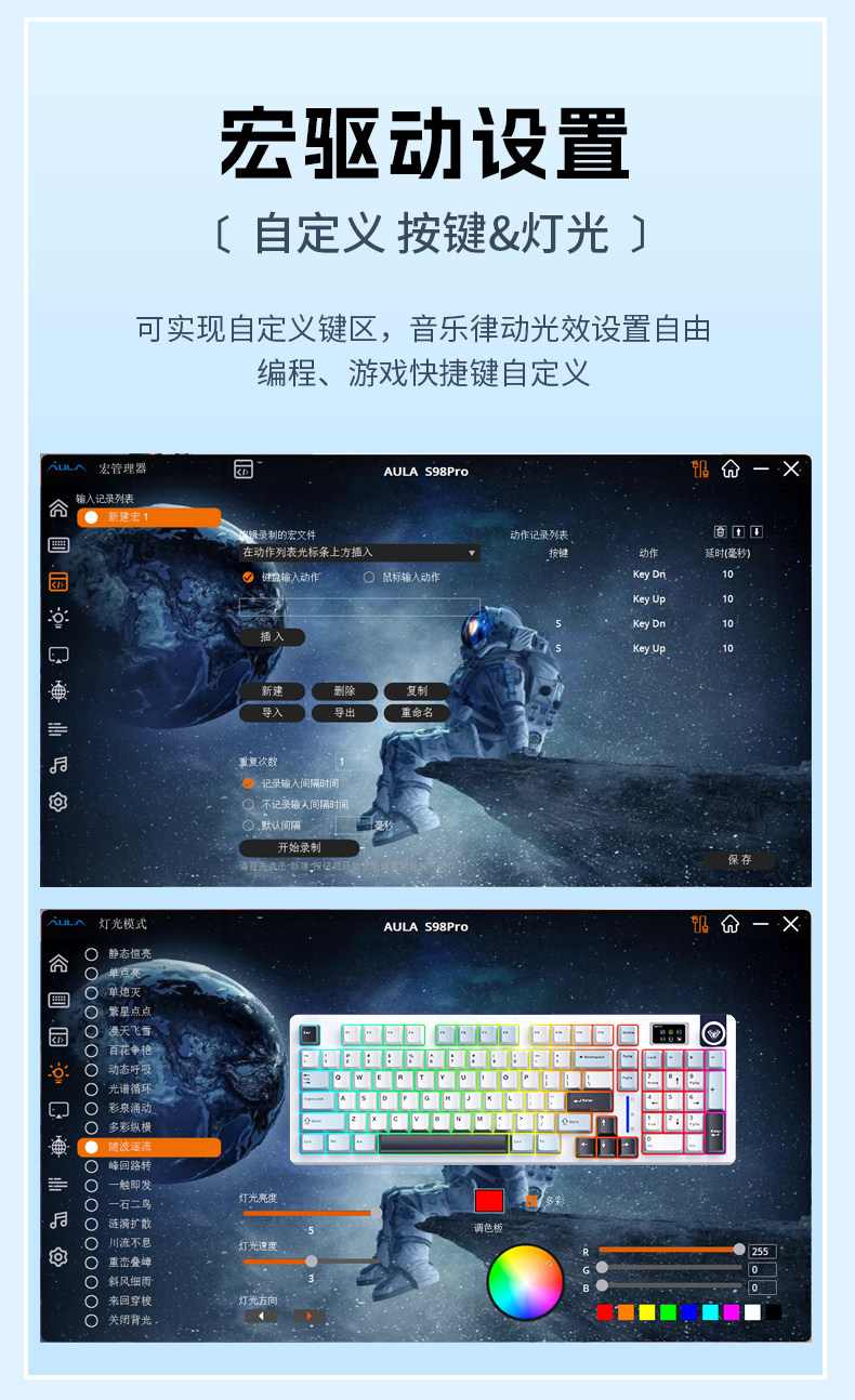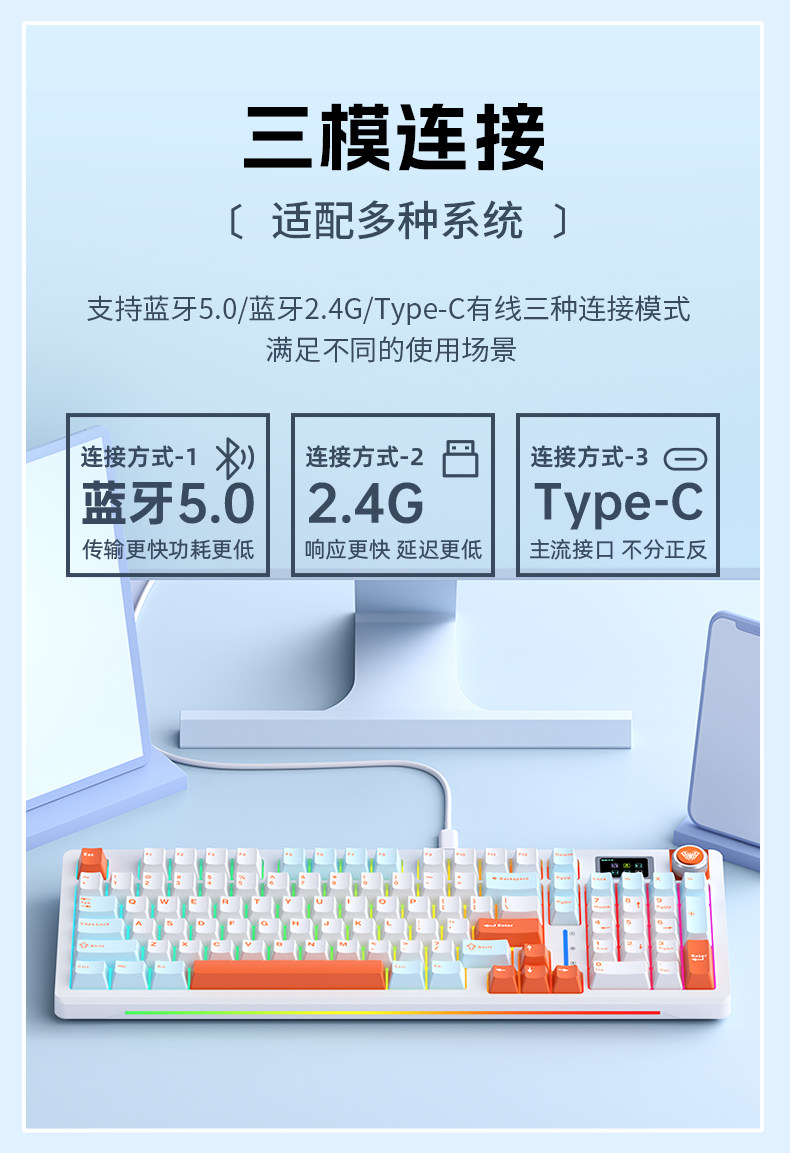 Wolf Spider S98Pro Wireless Three-Mode Customized Mechanical Keyboard for Office General Use, Computer Games, E-Sports, and Laptops