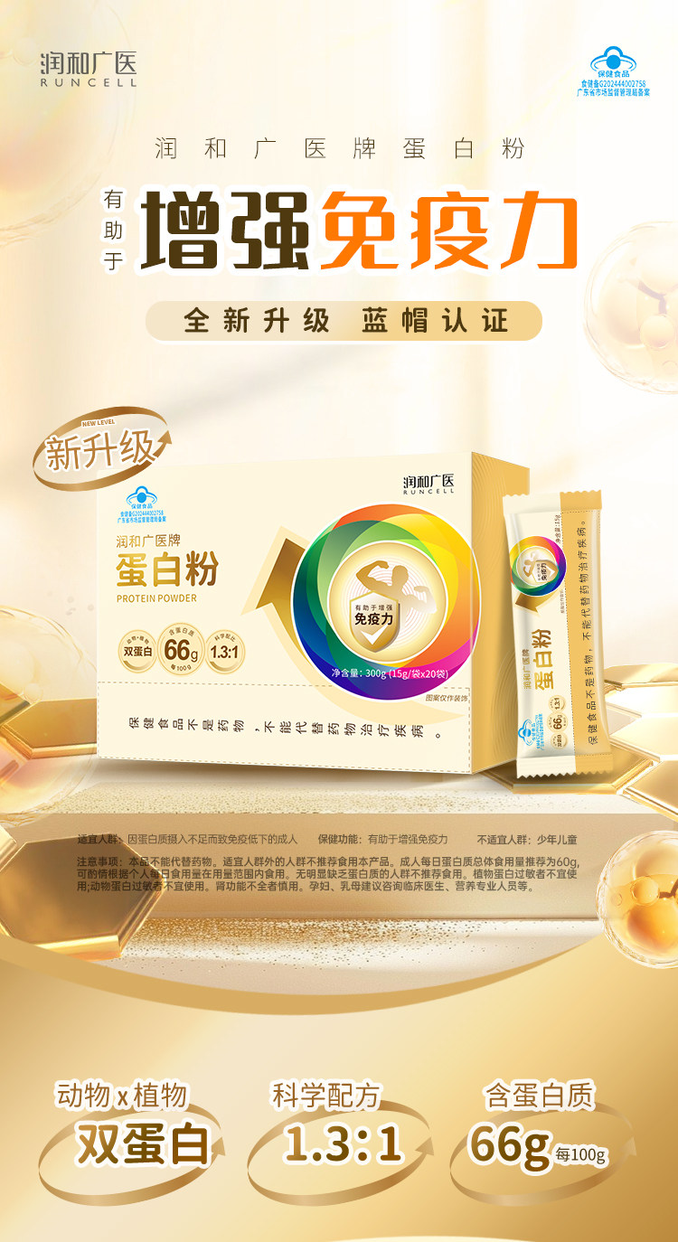 Runhe Guangyi Brand Protein Powder Soy Whey Double Protein Powder Genuine Nutritional Supplement for Middle-Aged and Elderly People