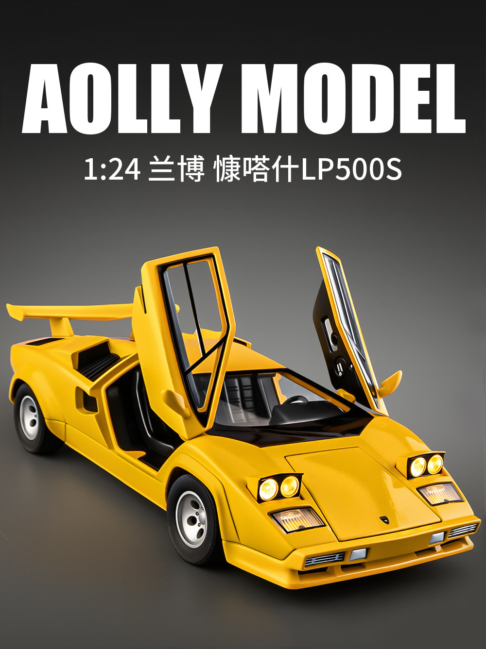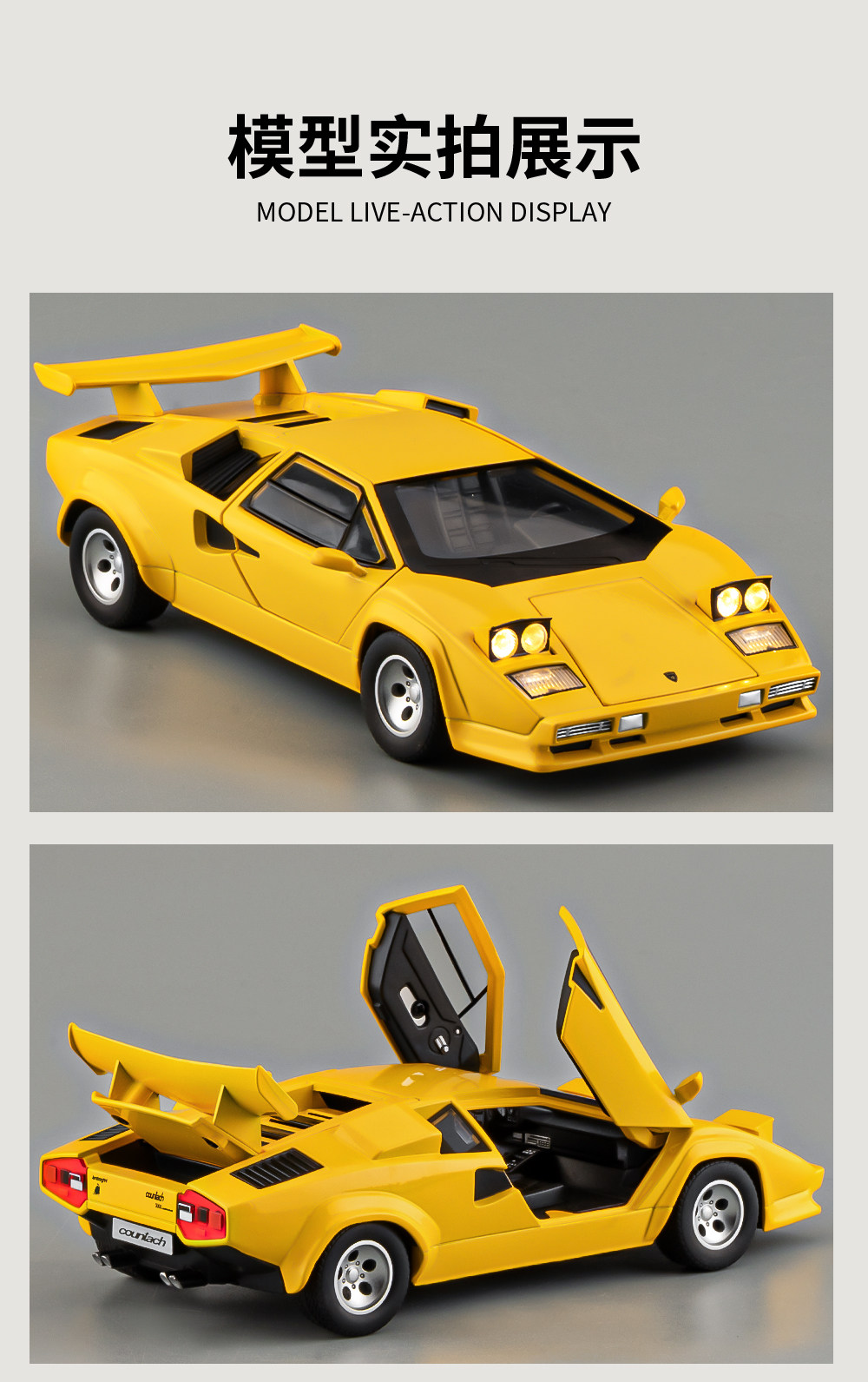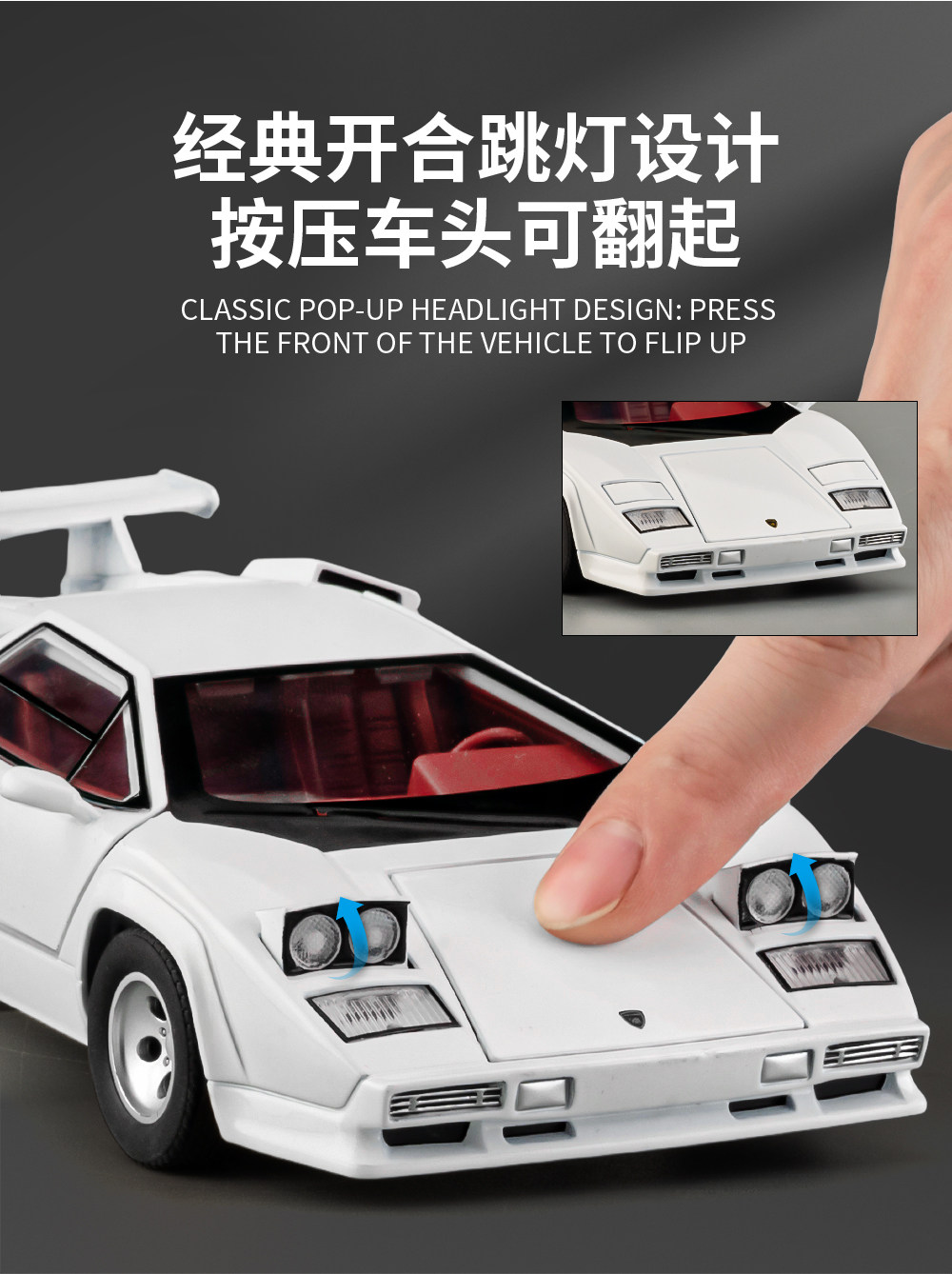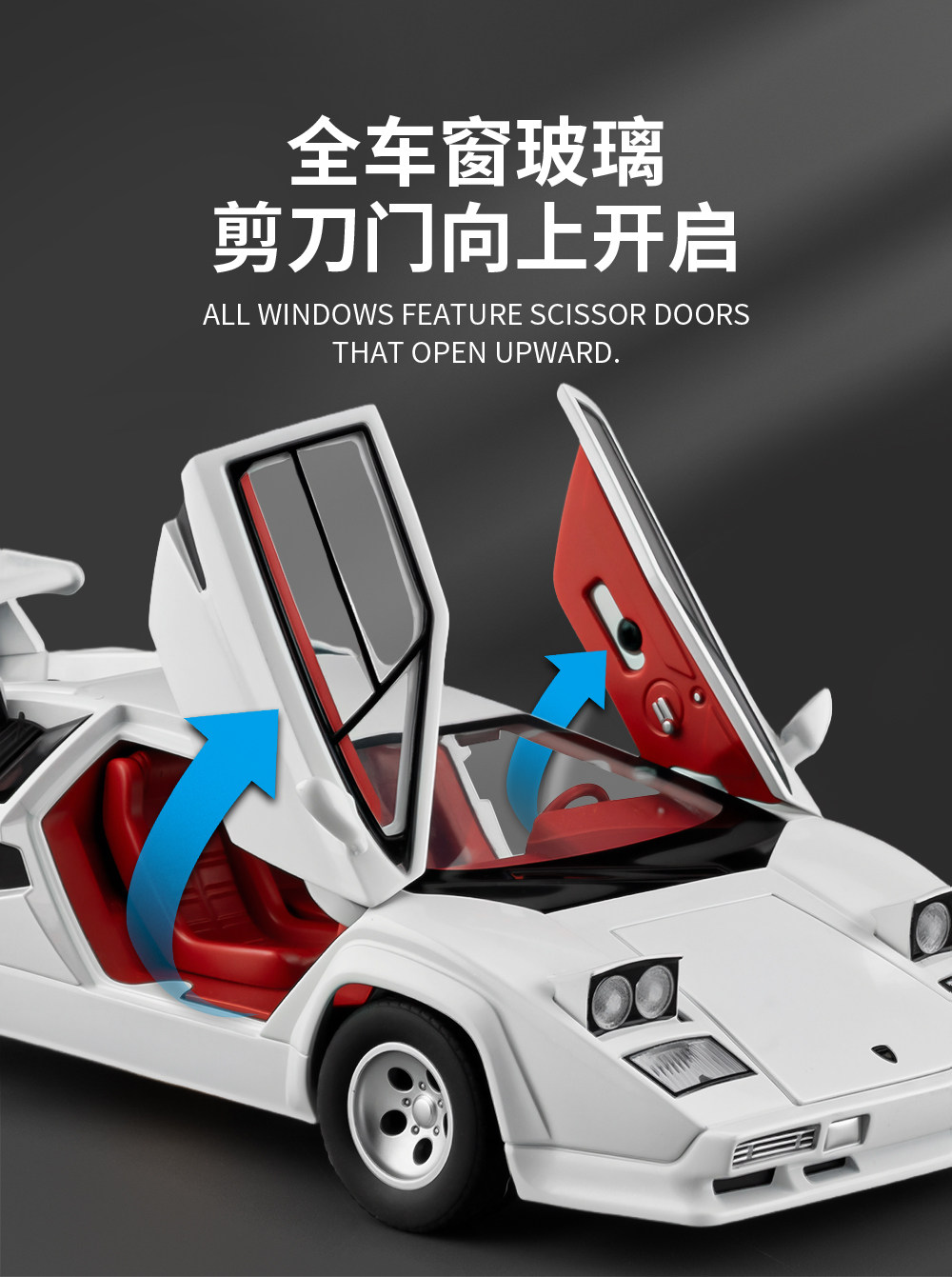 New 1:24 Lamborghini Countach Lp500S Alloy Car Model Ornament with Opening Doors, Boy's Toy Sports Car Gift