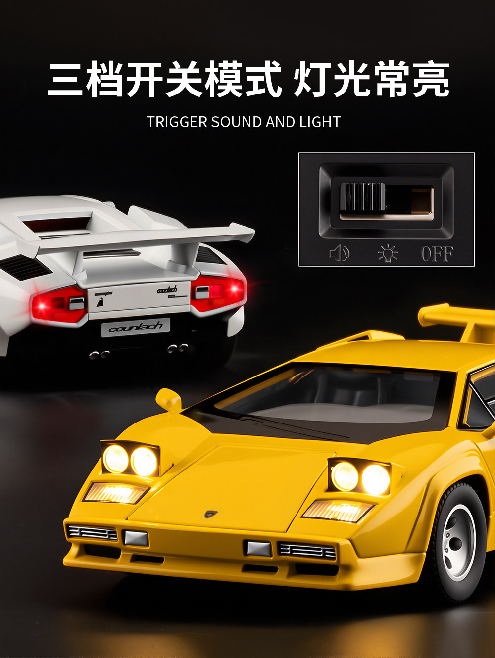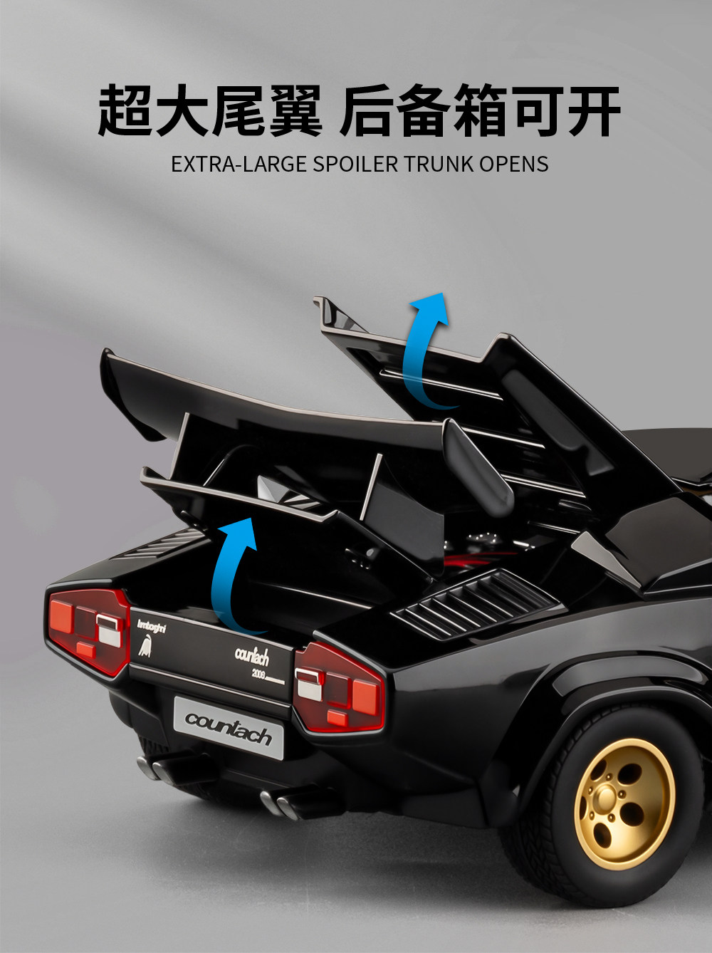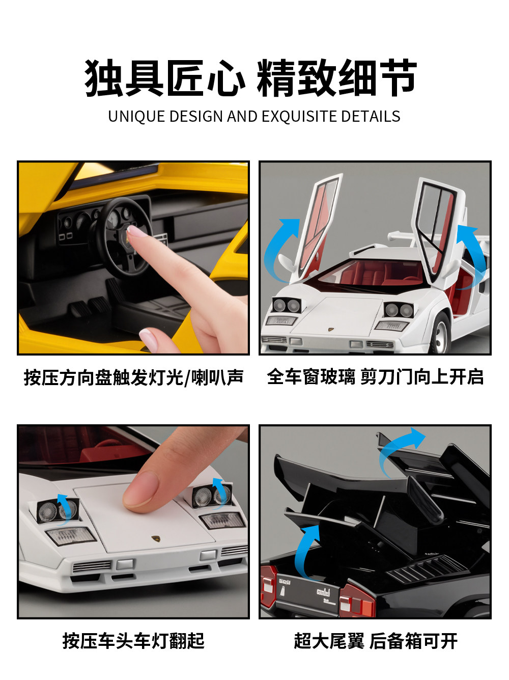 New 1:24 Lamborghini Countach Lp500S Alloy Car Model Ornament with Opening Doors, Boy's Toy Sports Car Gift