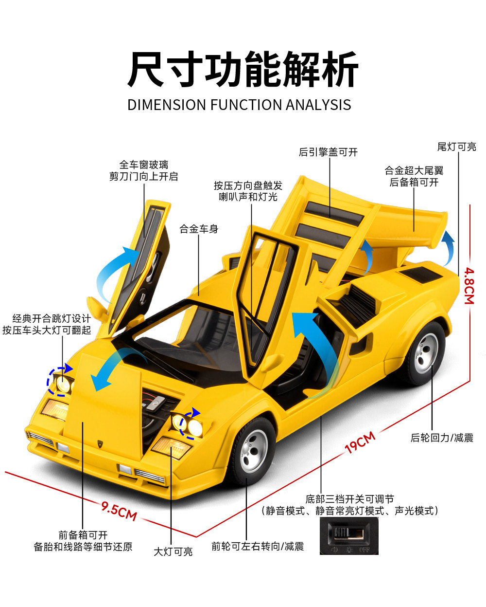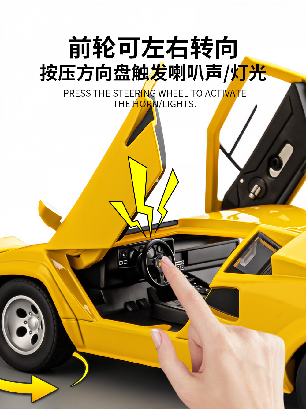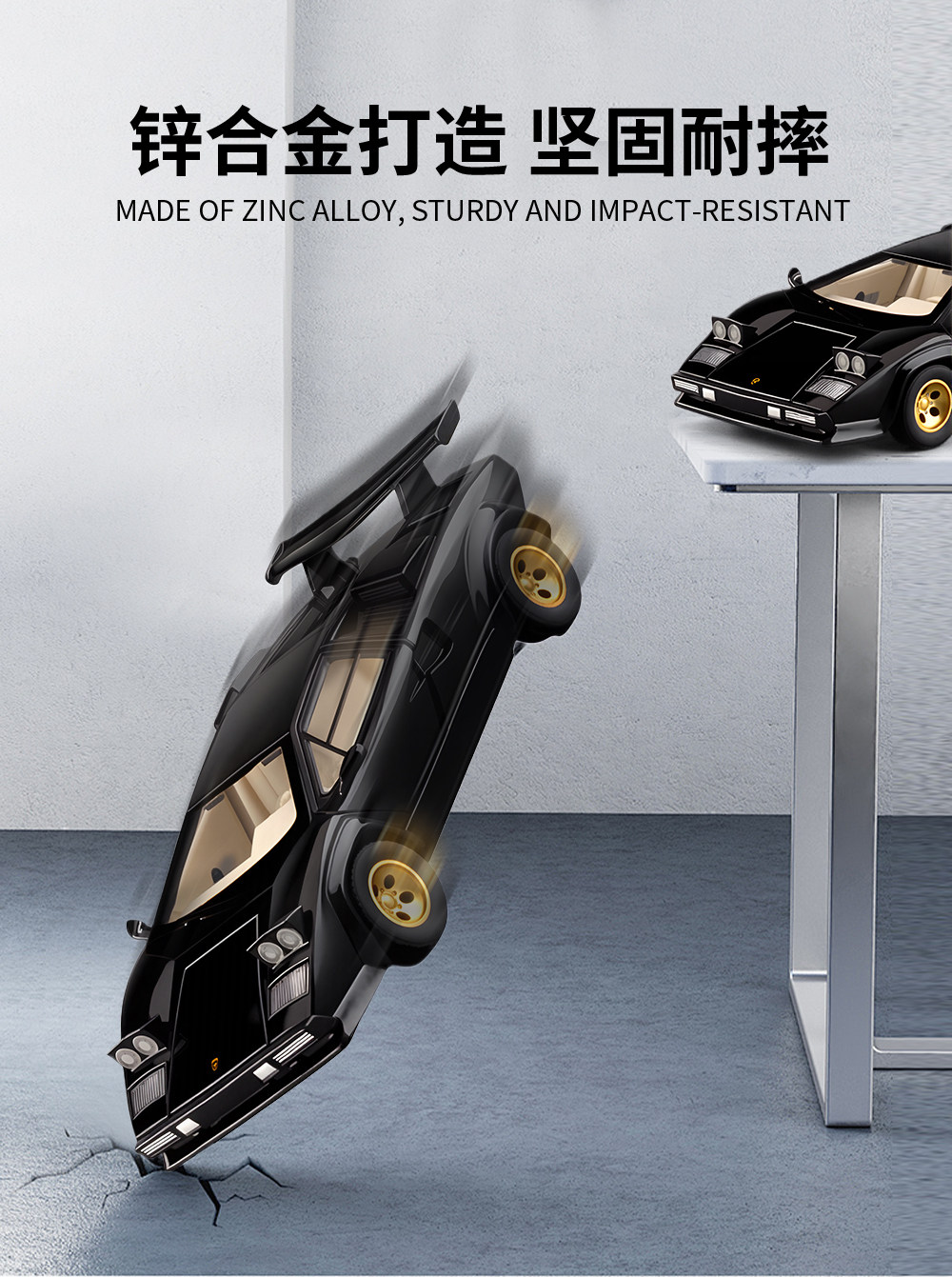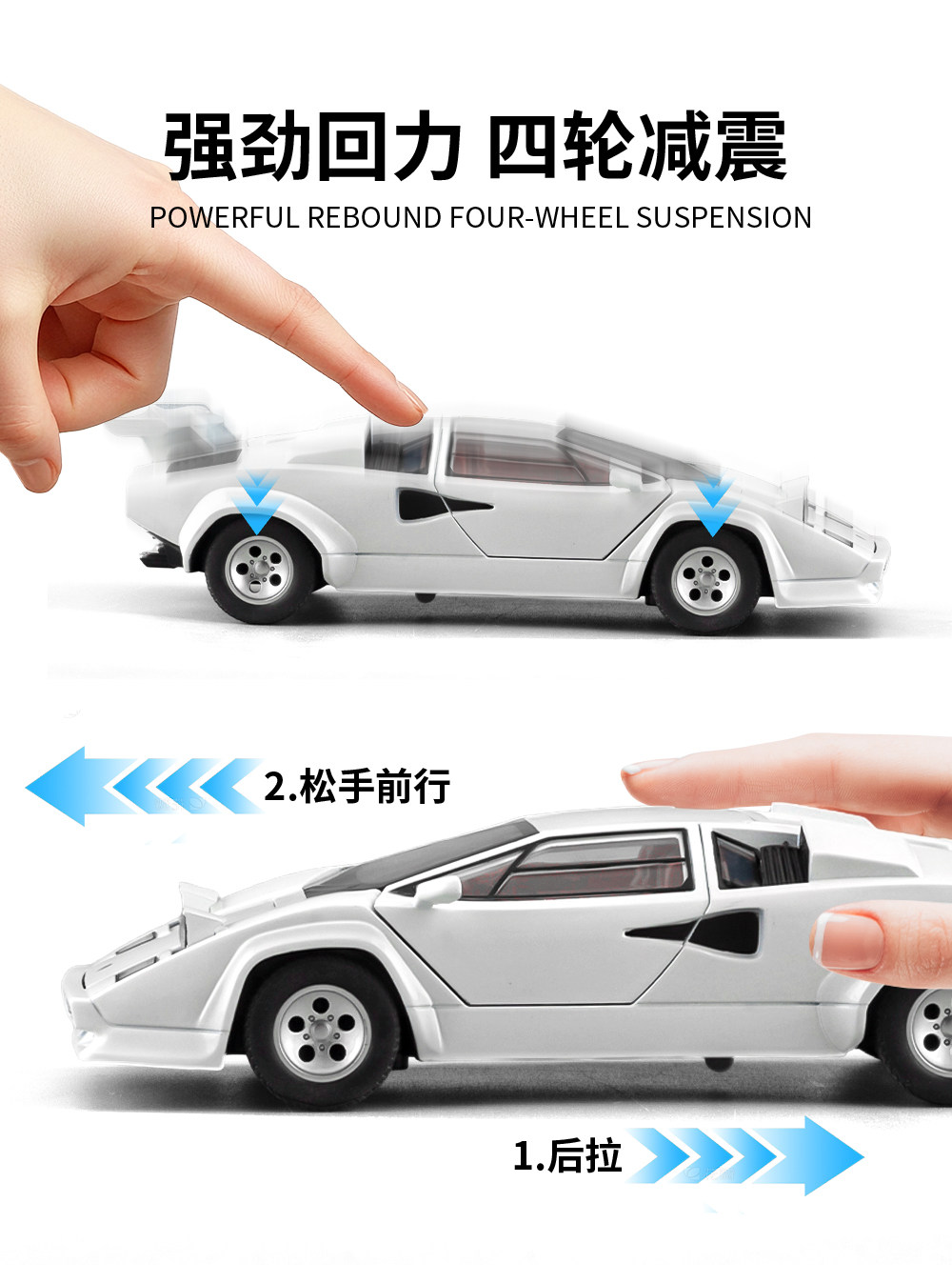 New 1:24 Lamborghini Countach Lp500S Alloy Car Model Ornament with Opening Doors, Boy's Toy Sports Car Gift