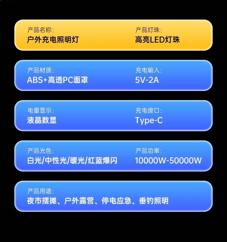 Outdoor Camping Light, Strong Light, Long Battery Life, Portable Rechargeable Lighting, Emergency Light, Multi-Functional Outdoor Camping Light