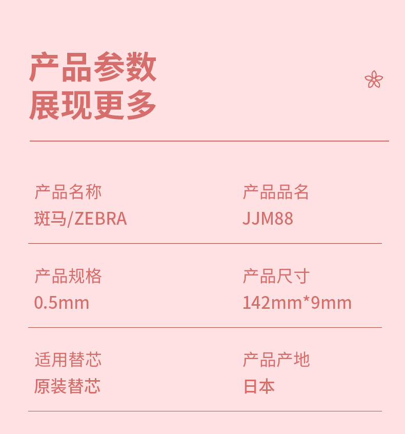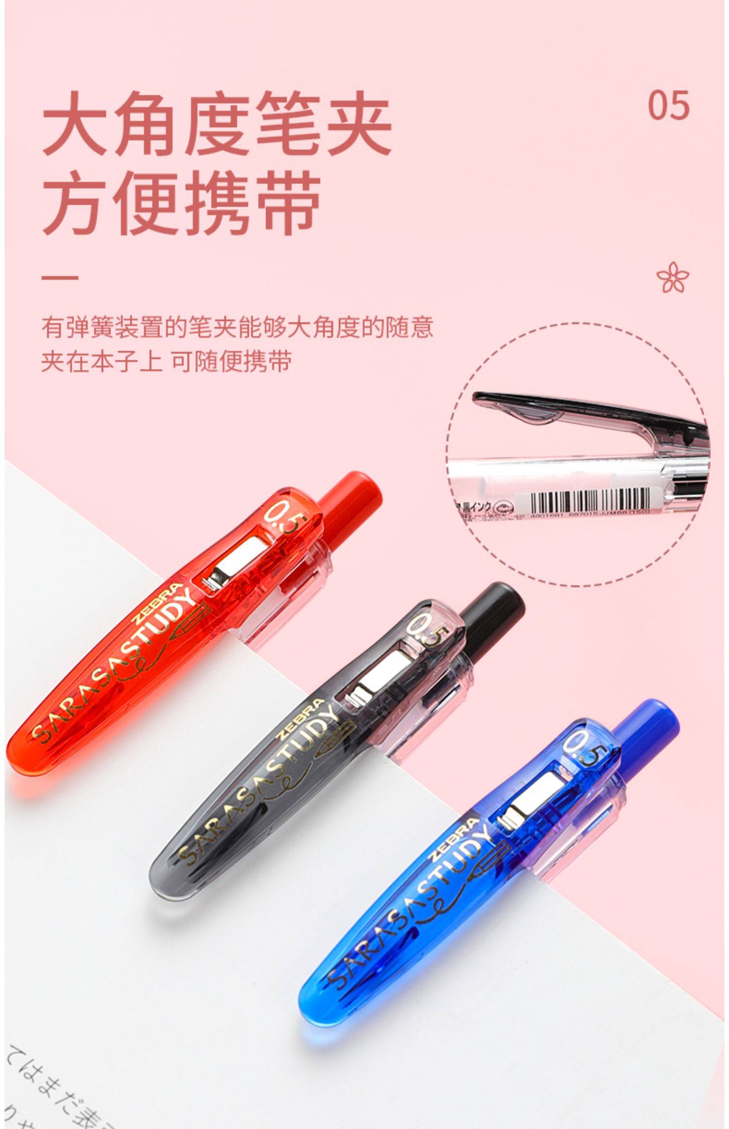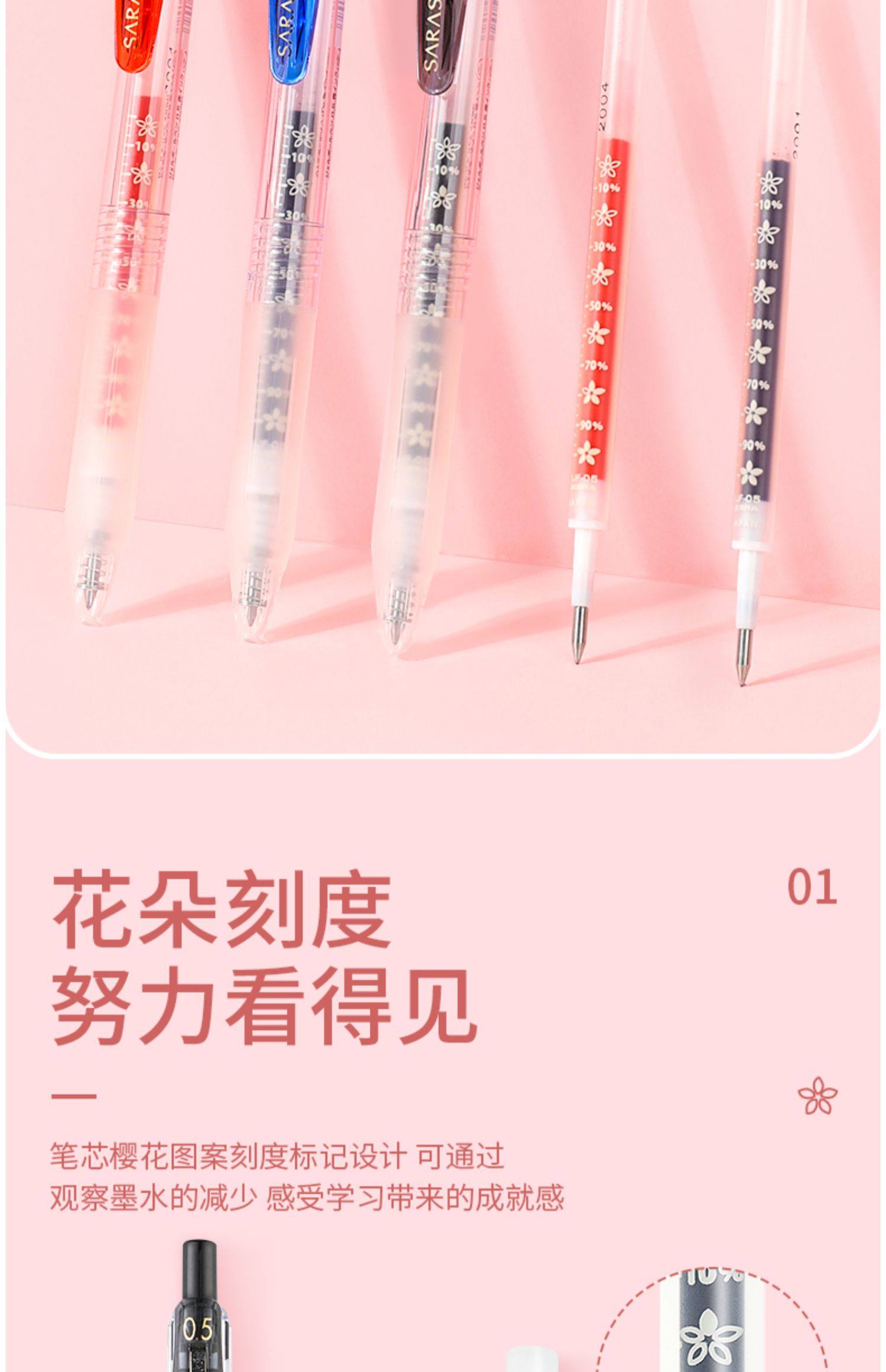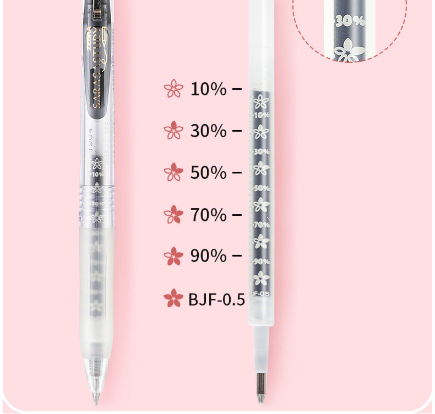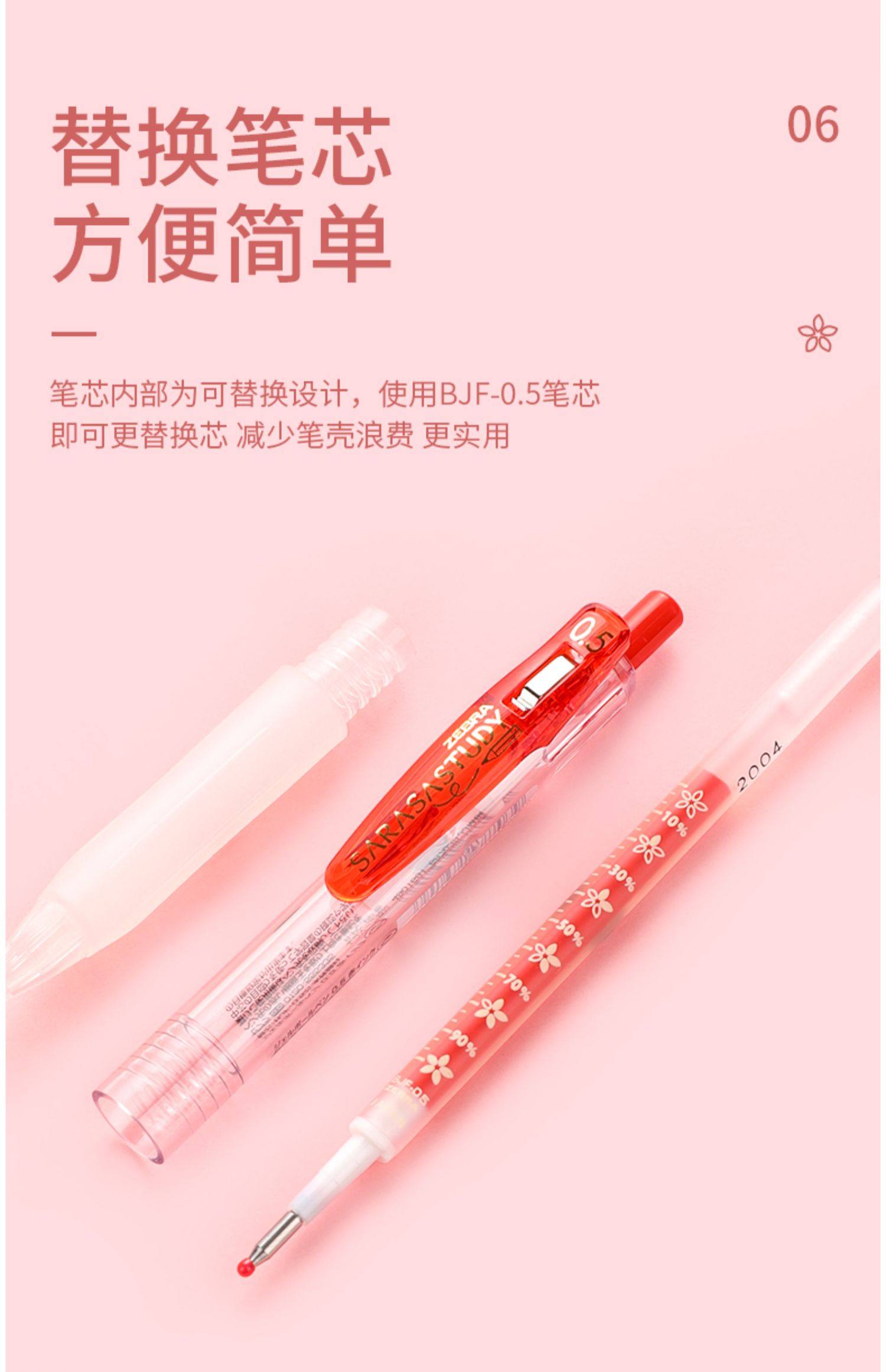 Japanese Zebra Sarasa Study Black Gel Pen Jjm88 Motivational Flower Design Quick-Drying Retractable Black Pen Bjf Refill for Students, Sakura Limited Edition 0.5mm