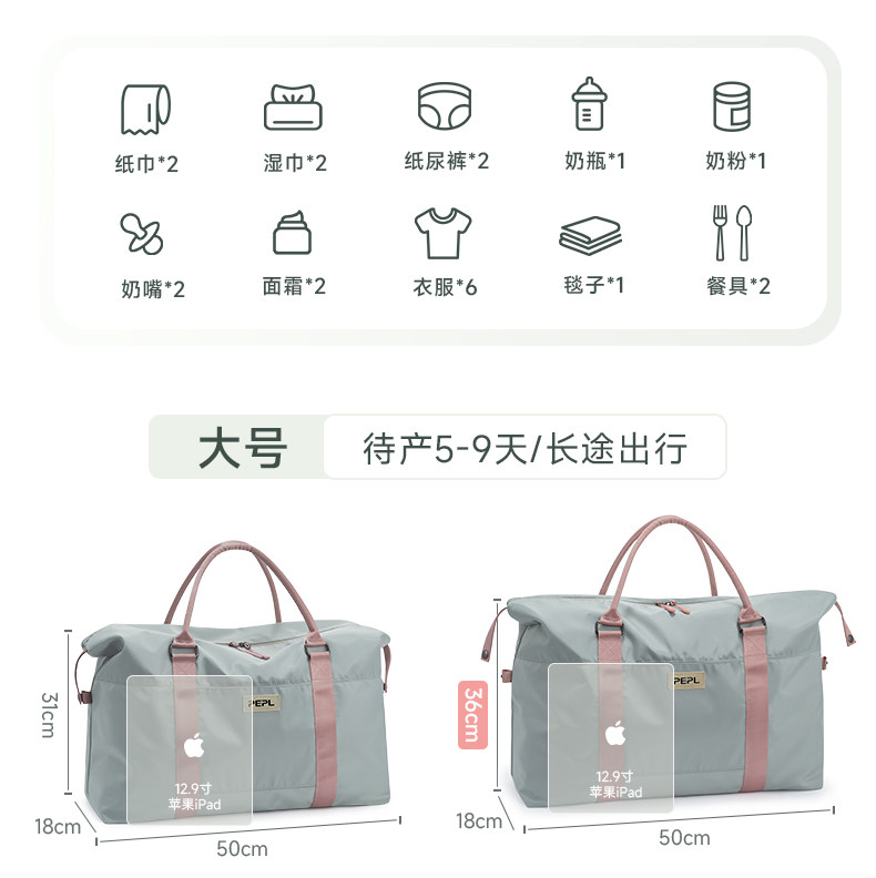 Large-Capacity Lightweight Maternity Bag, Women's Satchel Short-Distance Travel Bag, Maternity Delivery Room Storage Bag, Pregnant Women's Hospital Admission Mother and Baby Bag