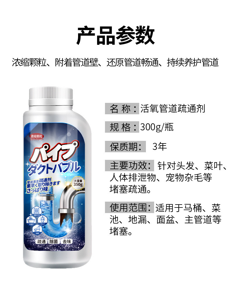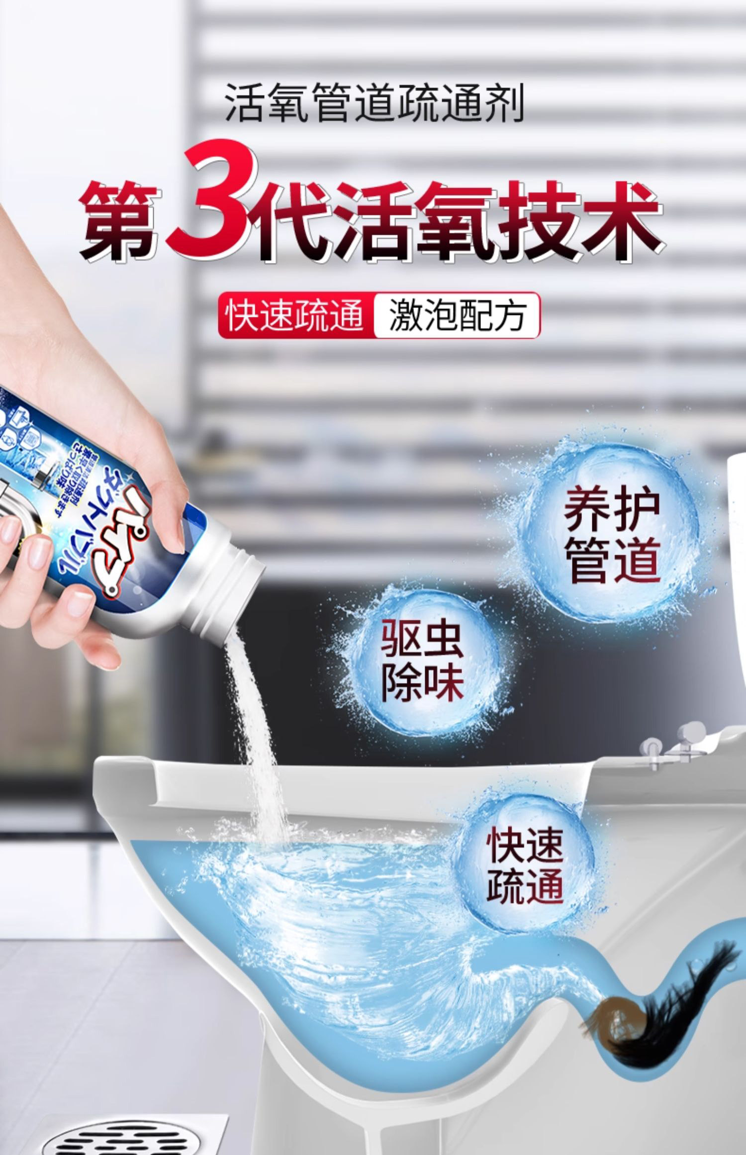 Pipe Dredging Agent Powerfully Dissolves Blockages in Drains, Toilets, and Kitchen Grease; a Liquid Deodorizer and Cleaning Agent