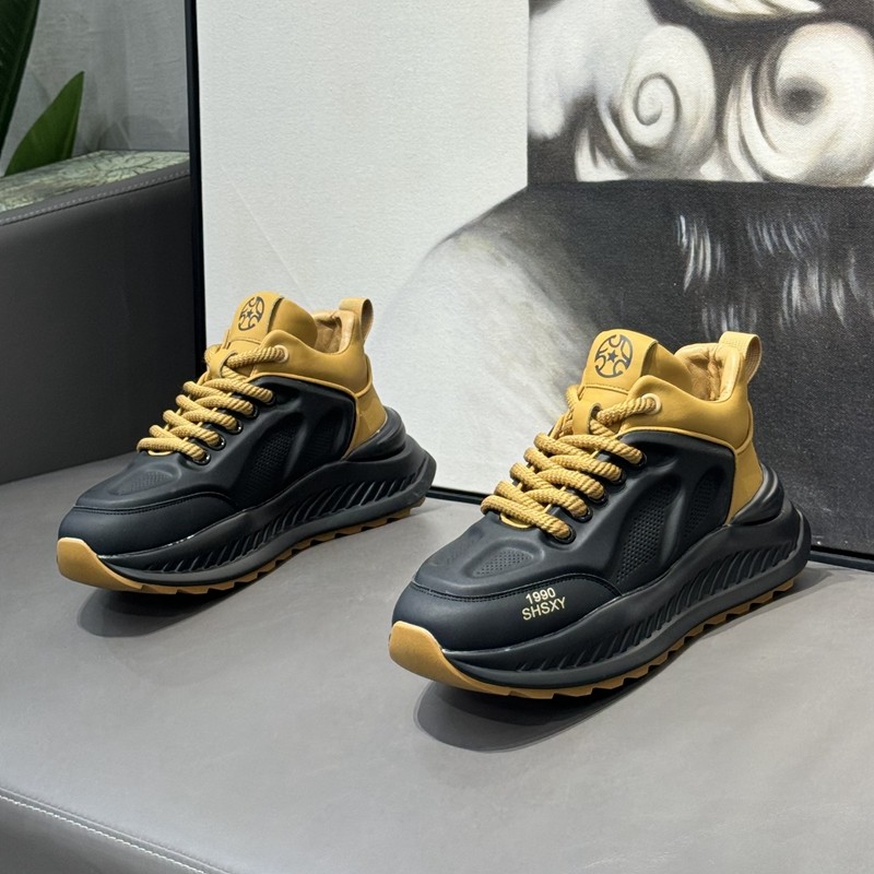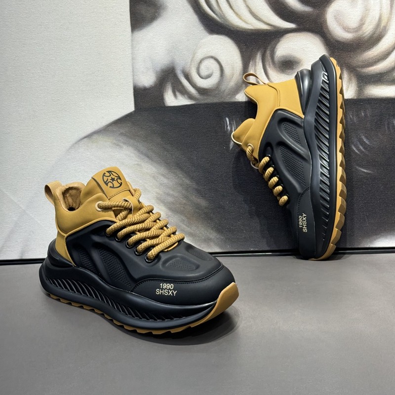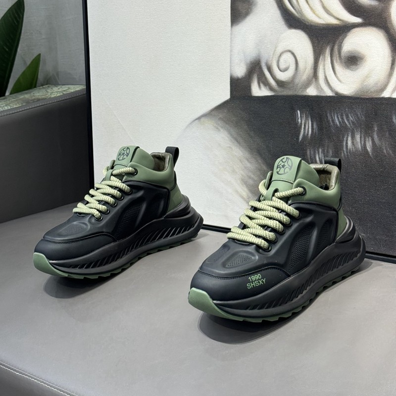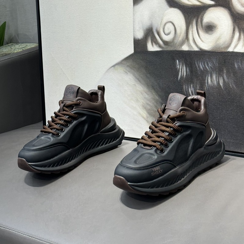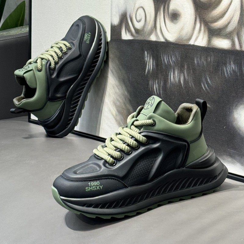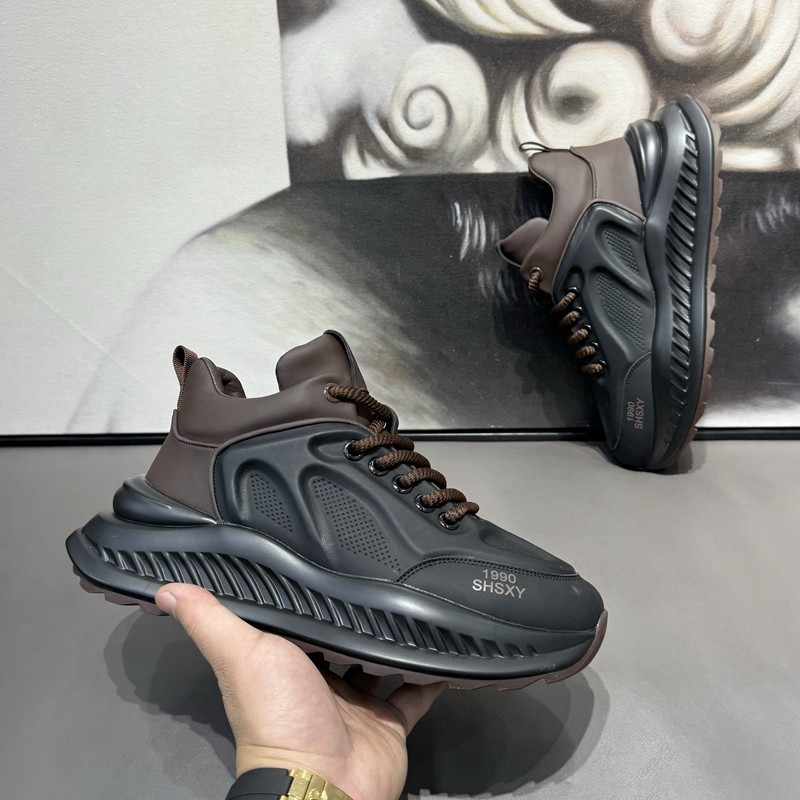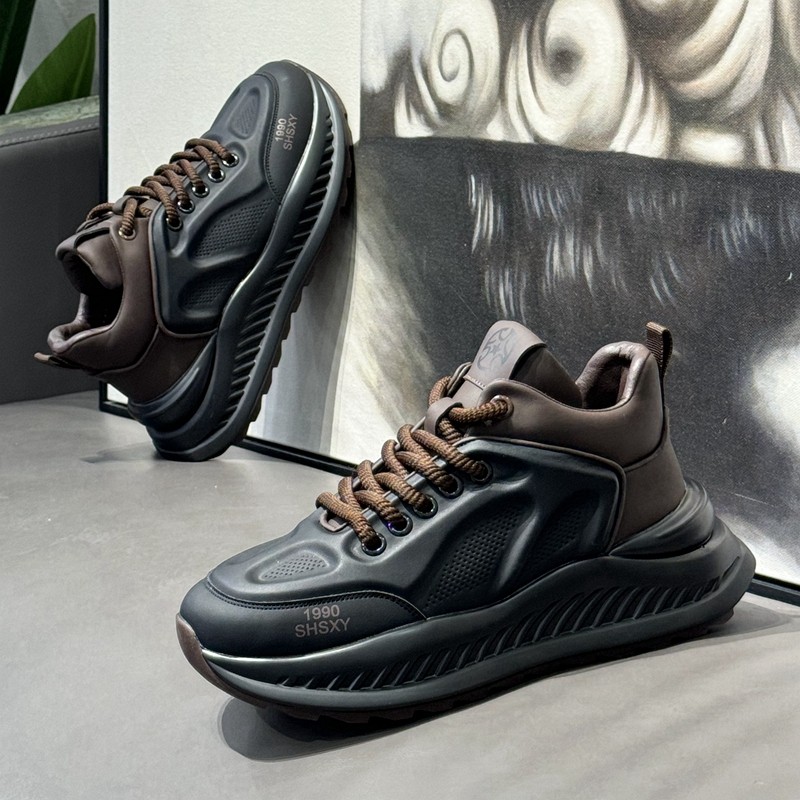 Men's Shoes 2025 New Autumn and Winter Trendy Brand High-End Leather Casual Running Sports Thick-Soled Height-Increasing Dad Shoes