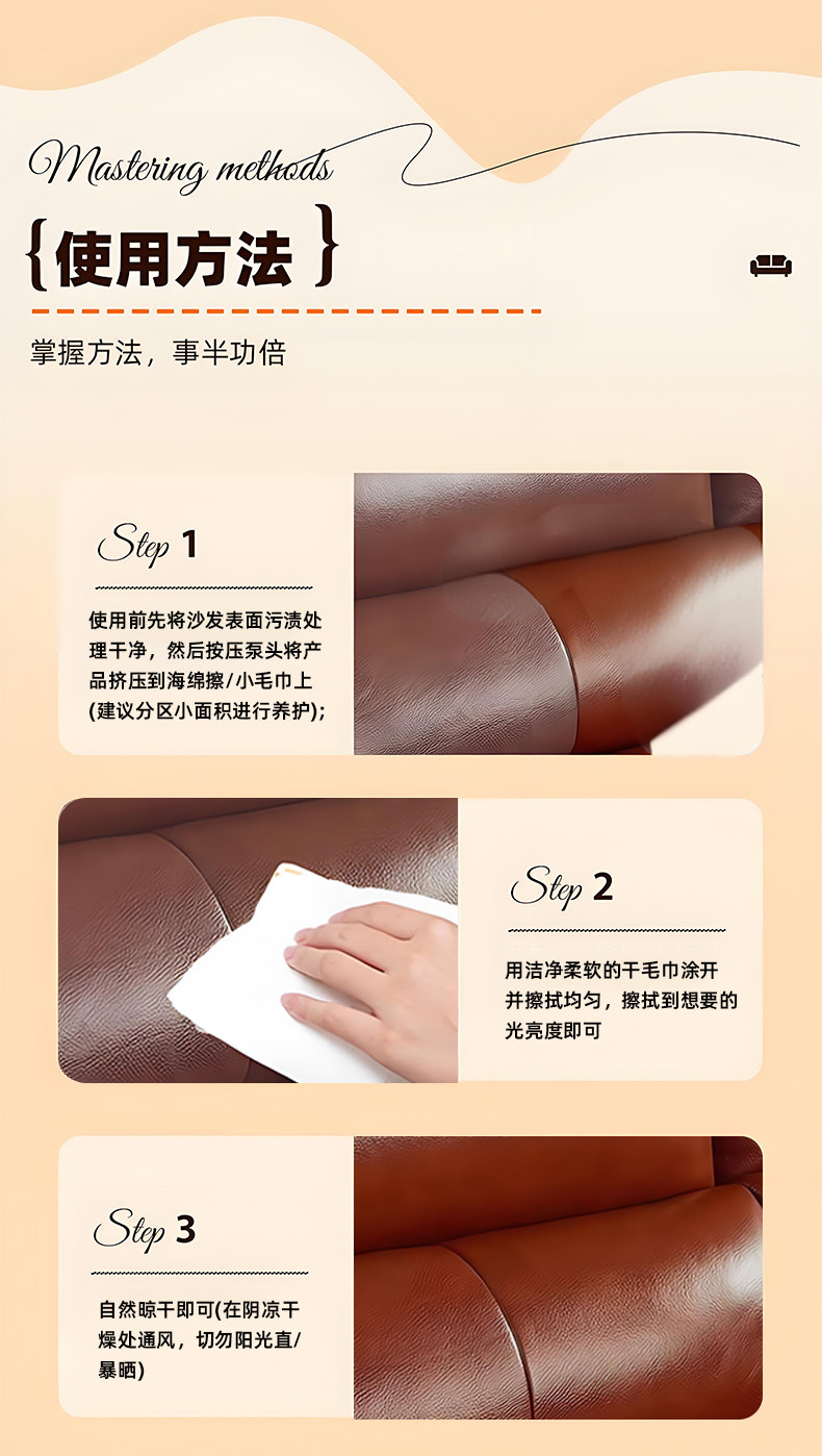 Leather Sofa Care and Maintenance Oil, No-Rinse Stain Remover, Leather Clothing and Bag Polish, Leather Repair and Cleaning Agent, Special%