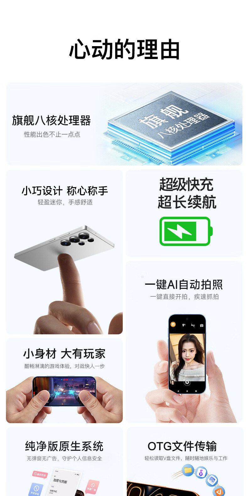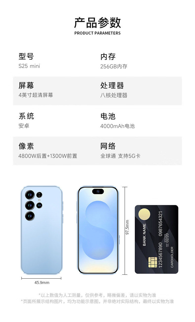 [Official Genuine Flagship] Huaqiangbei 2026 New Mini Small Screen S25Mini Smartphone for Students, Children, and Elderly, Ultra-Thin Card-Sized Backup Full-Screen Portable and Affordable Smartphone