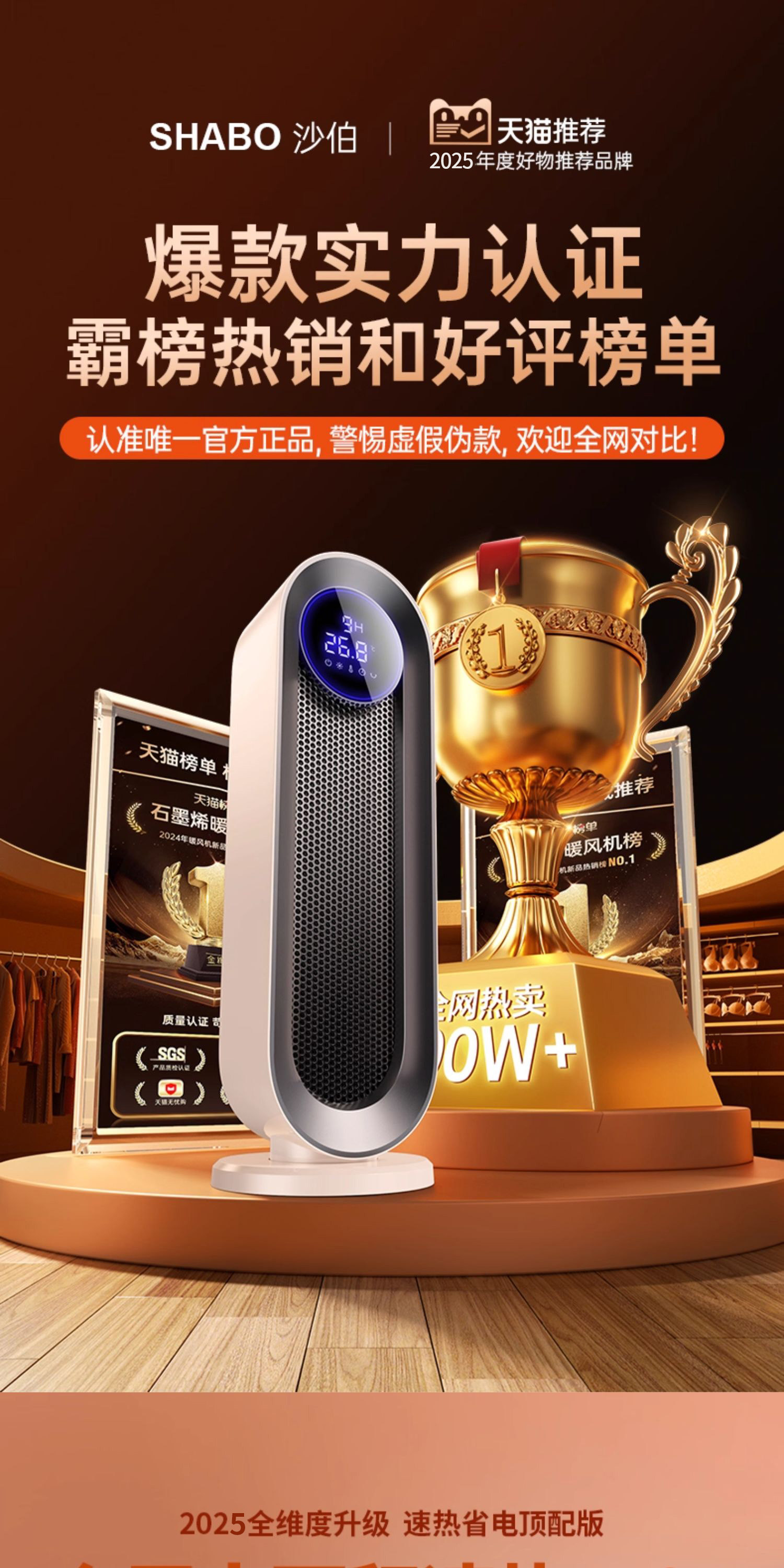 2025 New Model Heater Fan for Home Use, Large Area, Energy-Saving, Graphene Electric Heater for Winter Bathroom