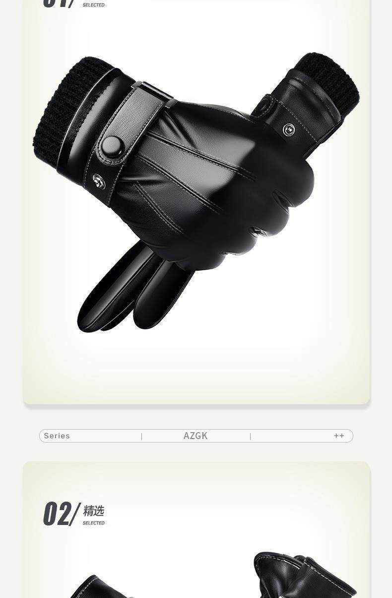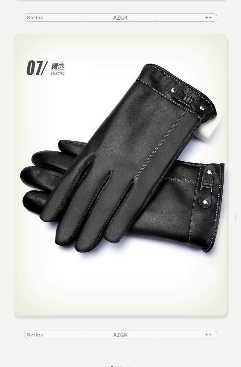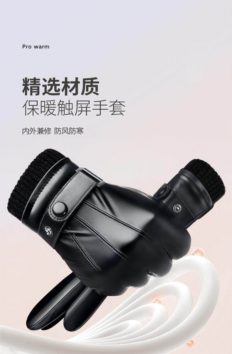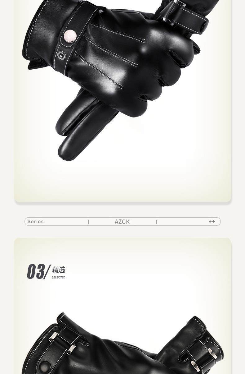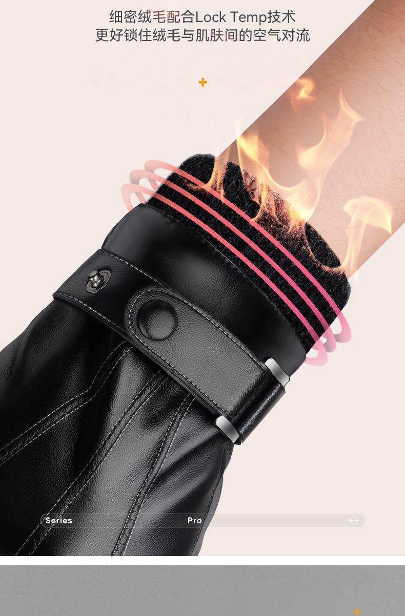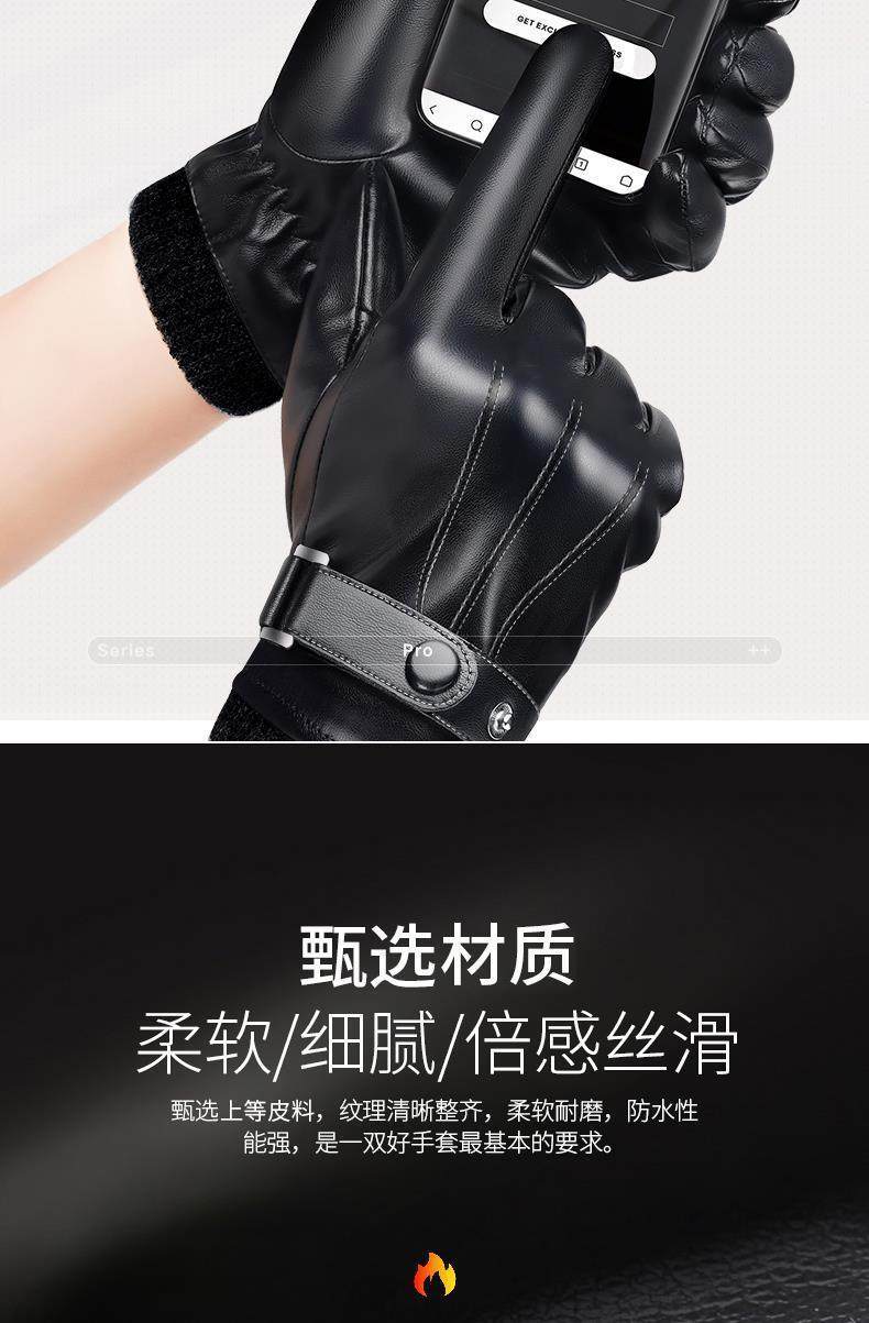 Leather Gloves for Men, Winter Fleece-Lined, Thickened, Windproof, Waterproof, Warm, Touchscreen Compatible, Motorcycle Cotton Winter Riding Gloves