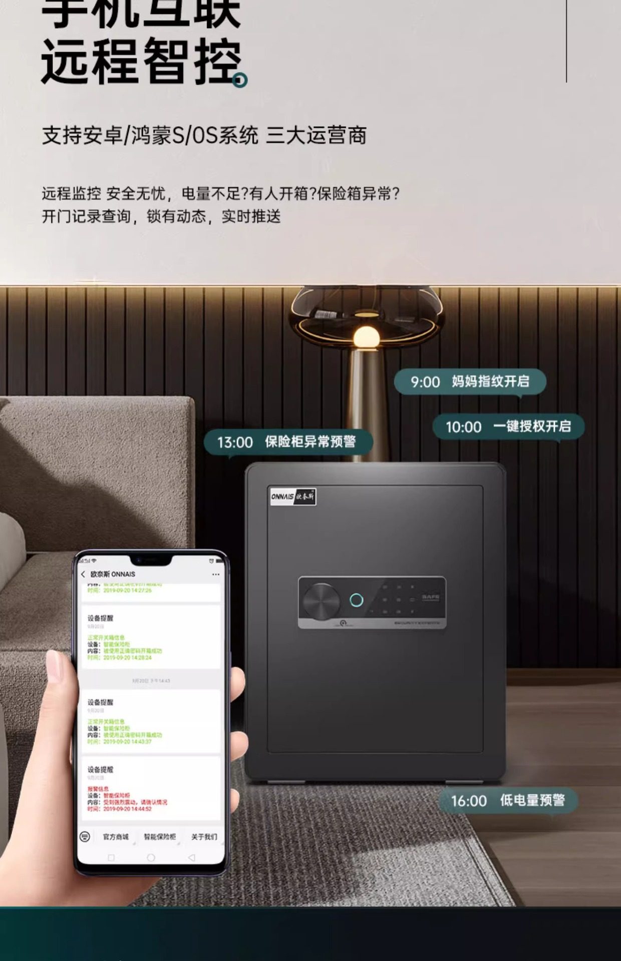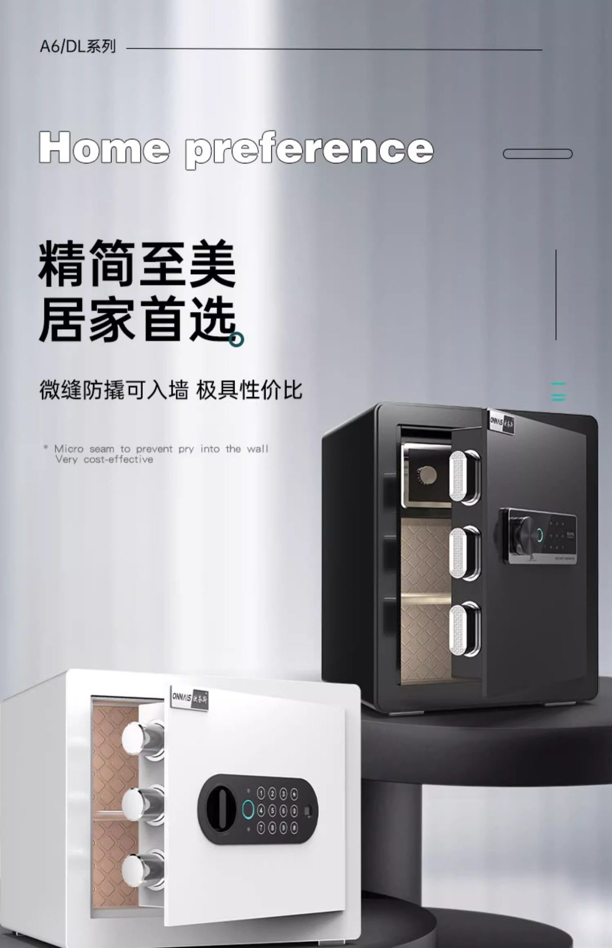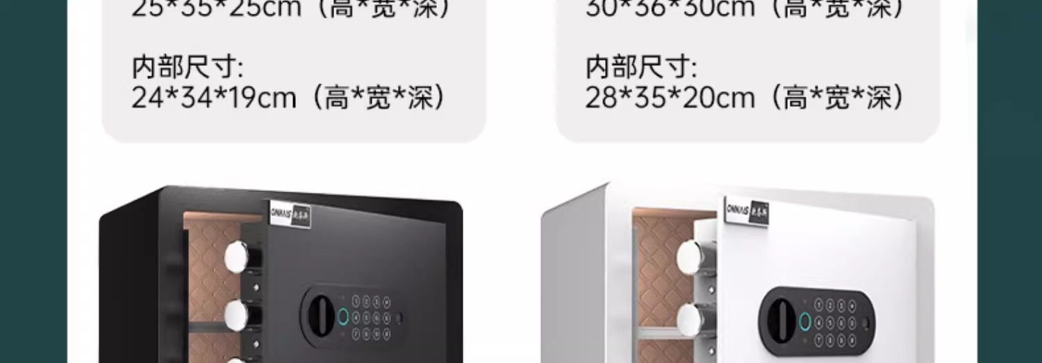 Safe Deposit Box for Home Use, Small Size 25/35/45cm, Office Fingerprint Safe, Wardrobe All-Steel Body, Storage, Ounais