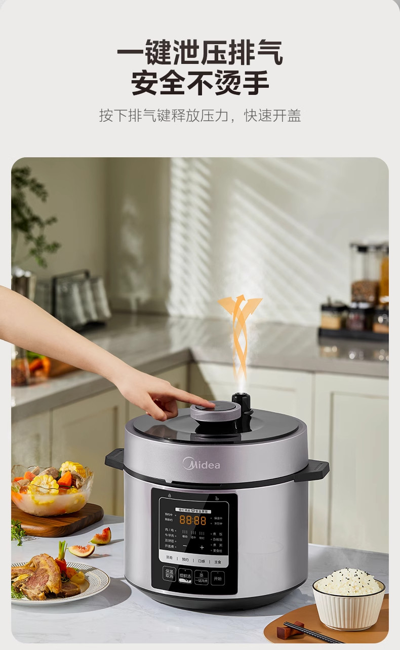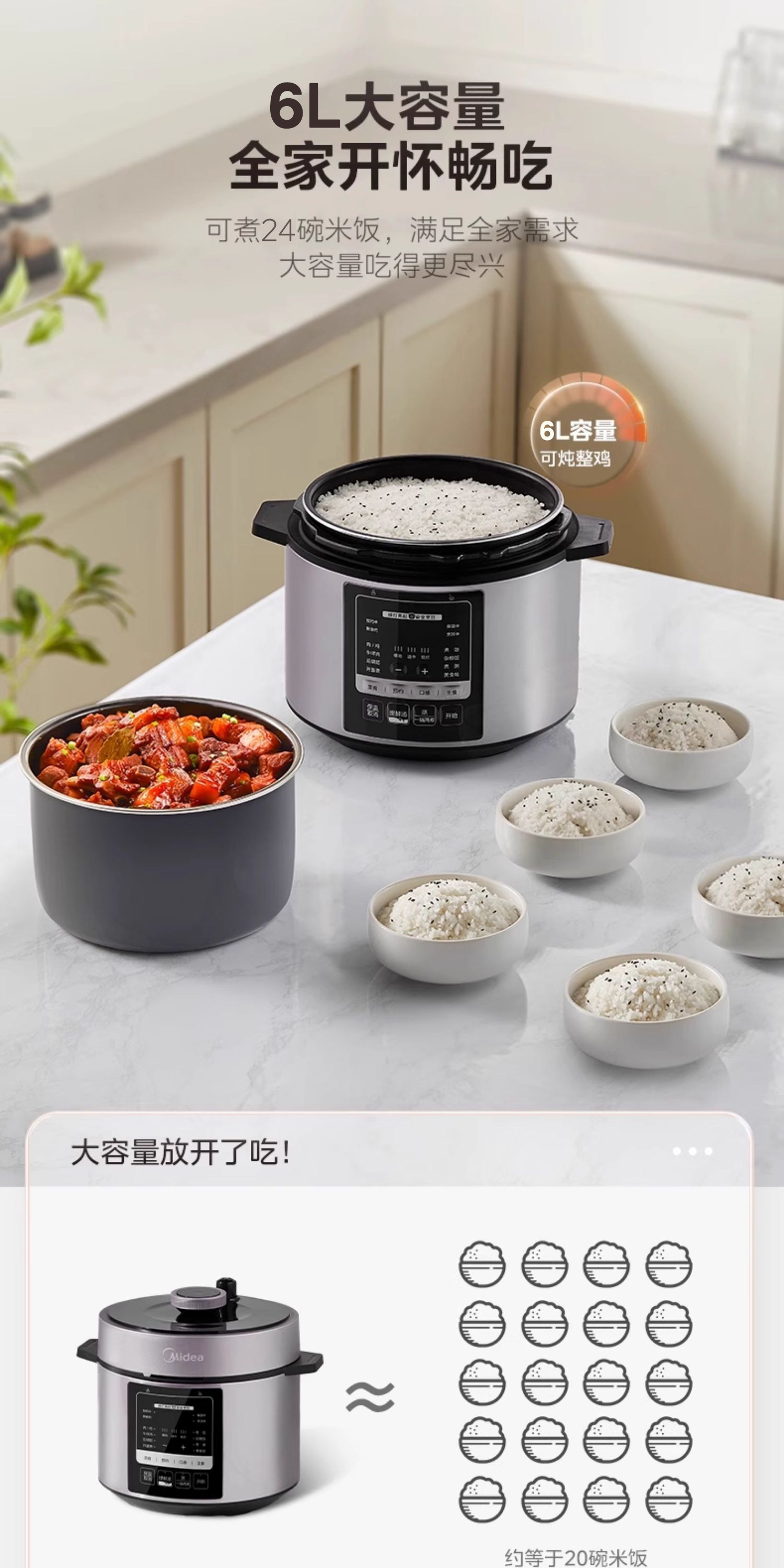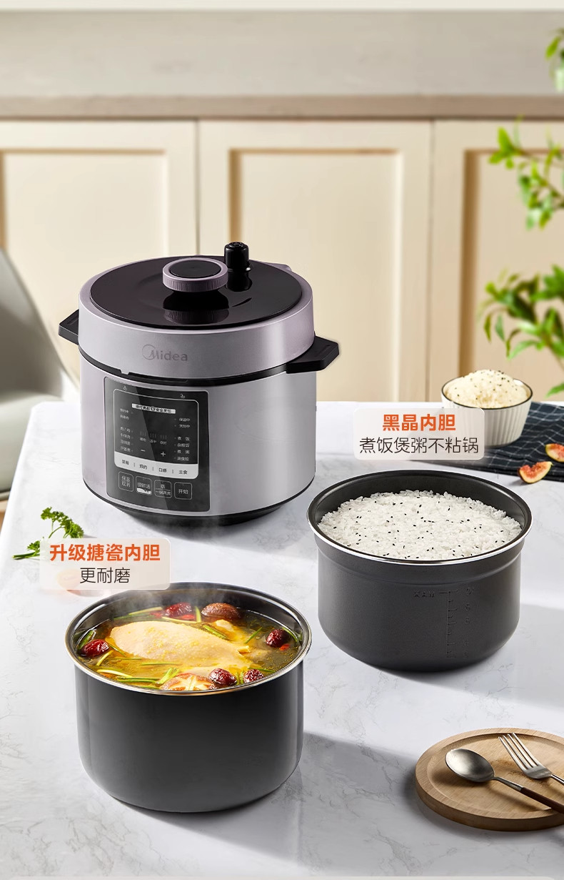 Midea Electric Pressure Cooker for Home Use, 6-Liter Dual Pot Electric Pressure Cooker, Rice Cooker, Fully Automatic, Multi-Functional, Official Flagship Genuine Product