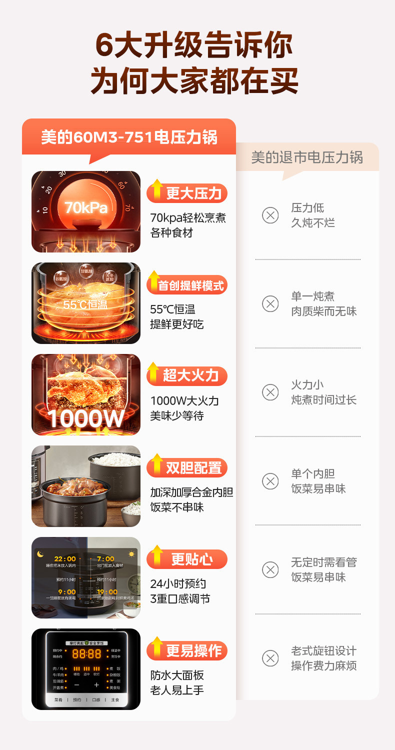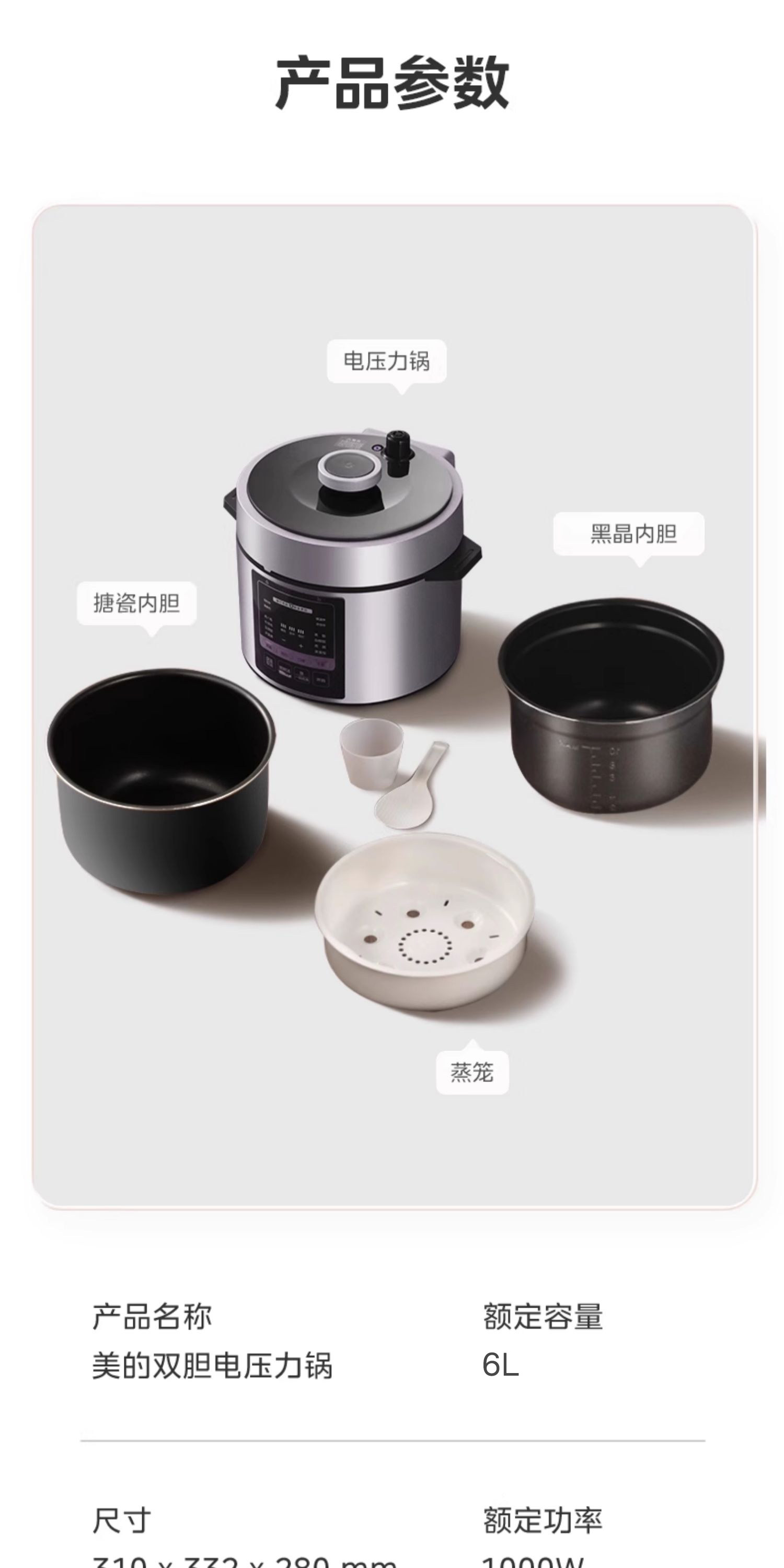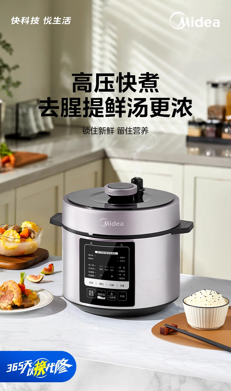 Midea Electric Pressure Cooker for Home Use, 6-Liter Dual Pot Electric Pressure Cooker, Rice Cooker, Fully Automatic, Multi-Functional, Official Flagship Genuine Product