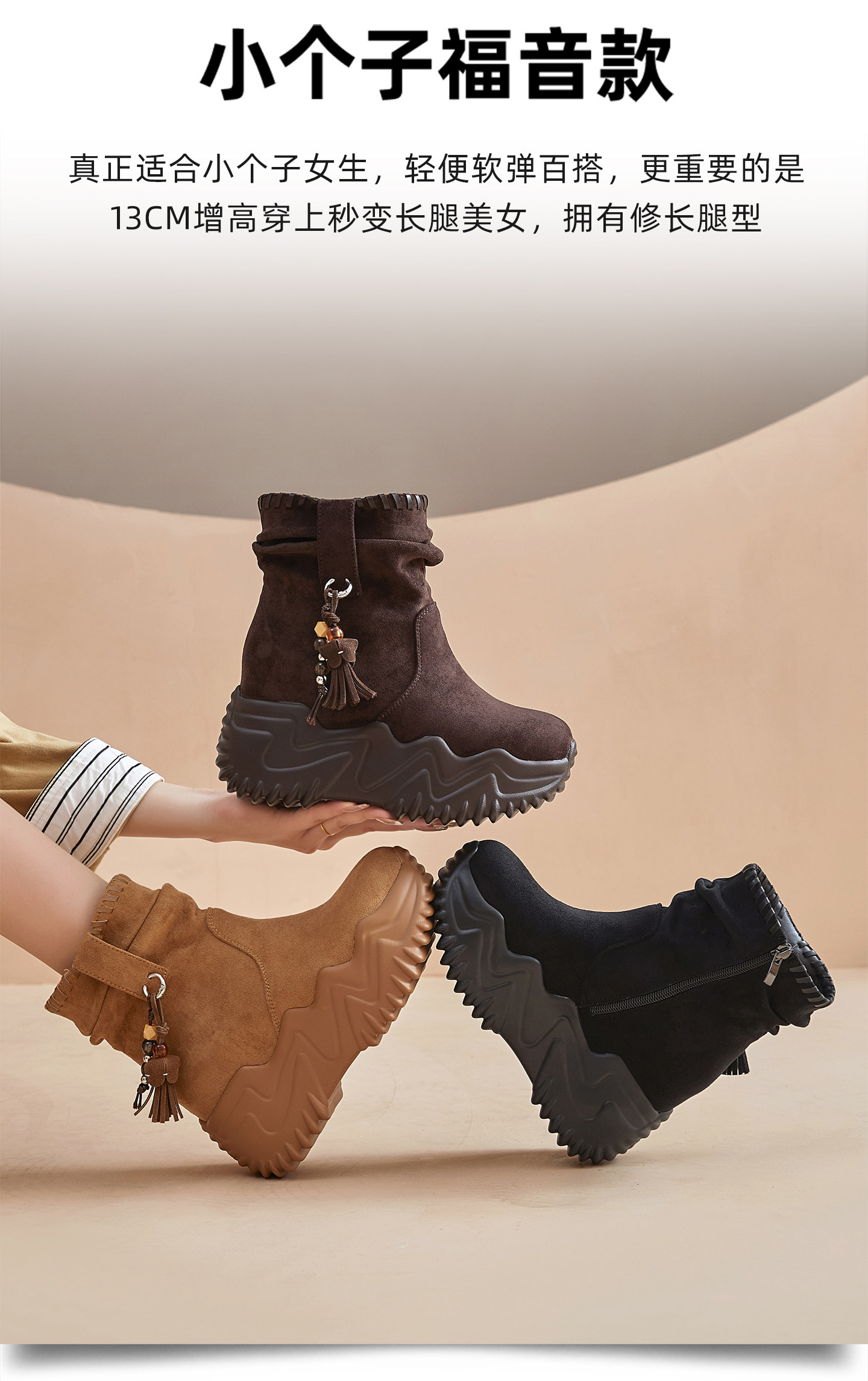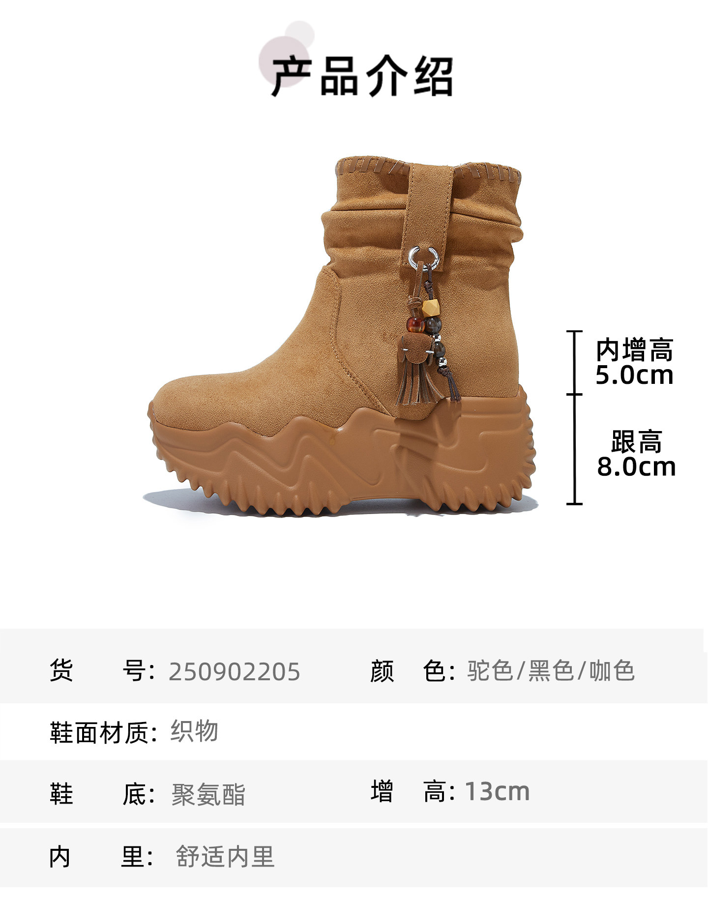 | Color Classification | Camel[Increase Height by 10cm],Black[Increase Height by 10cm],Camel[Increase Height by 13cm],Black[Increase Height by 13cm] |