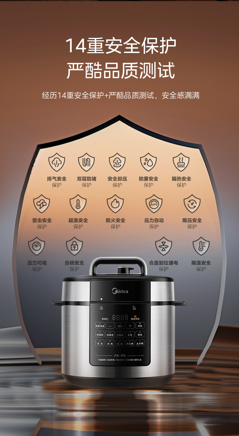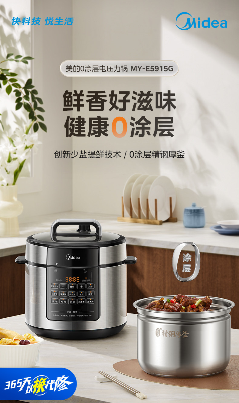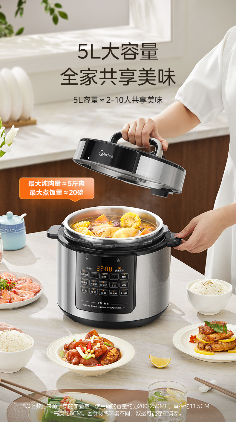 Midea Electric Pressure Cooker for Home Use, 0-Coating Electric Pressure Cooker, 5-Liter Smart Pressure Rice Cooker, Dual Pot, Multi-Functional Flagship Store