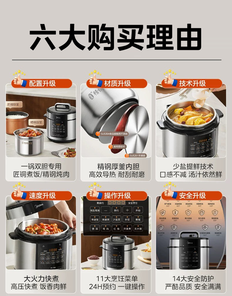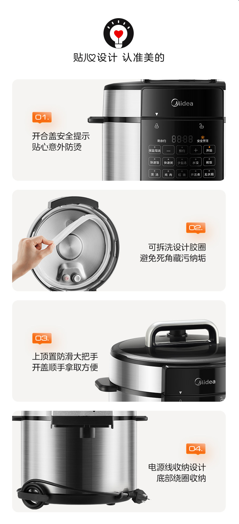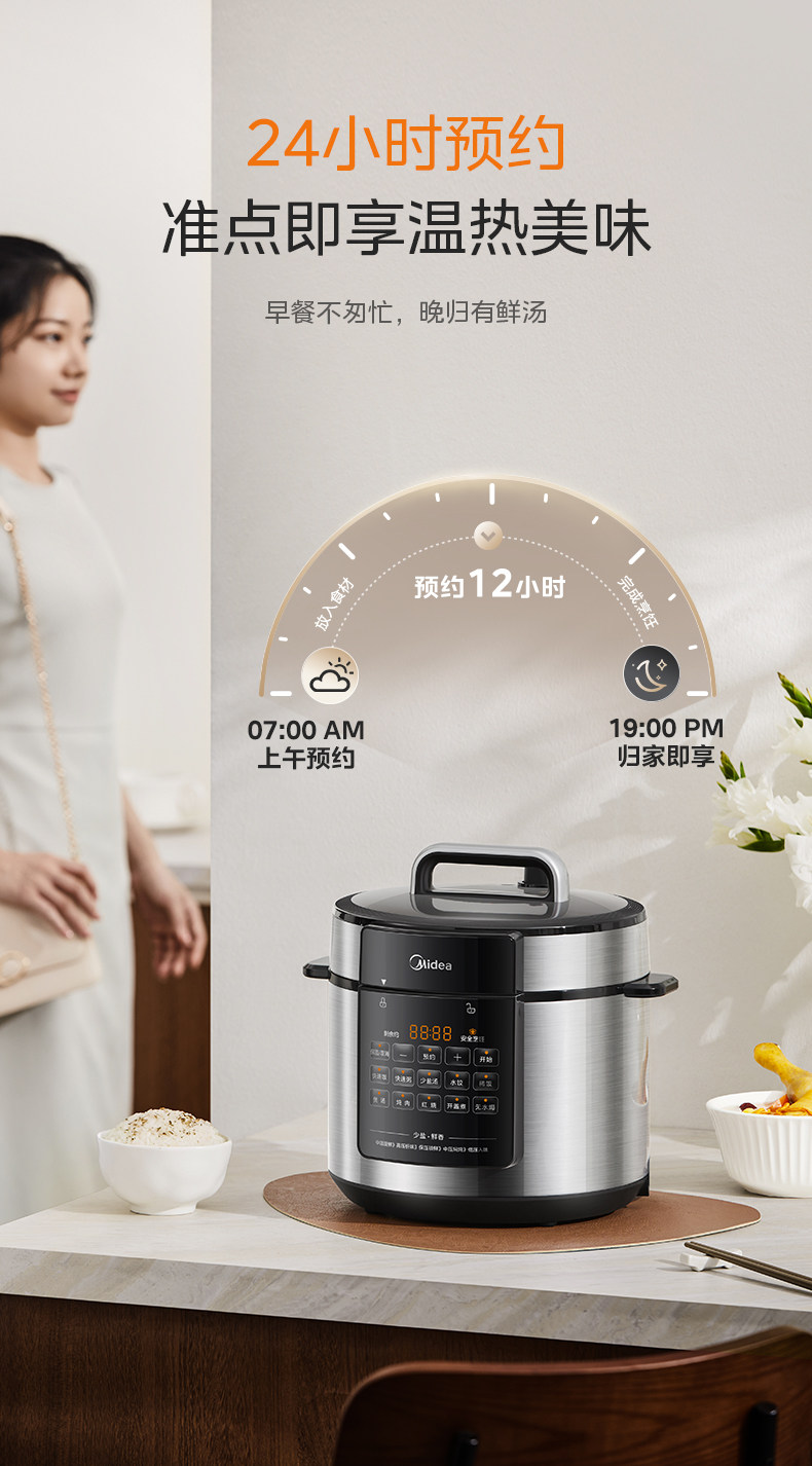Midea Electric Pressure Cooker for Home Use, 0-Coating Electric Pressure Cooker, 5-Liter Smart Pressure Rice Cooker, Dual Pot, Multi-Functional Flagship Store