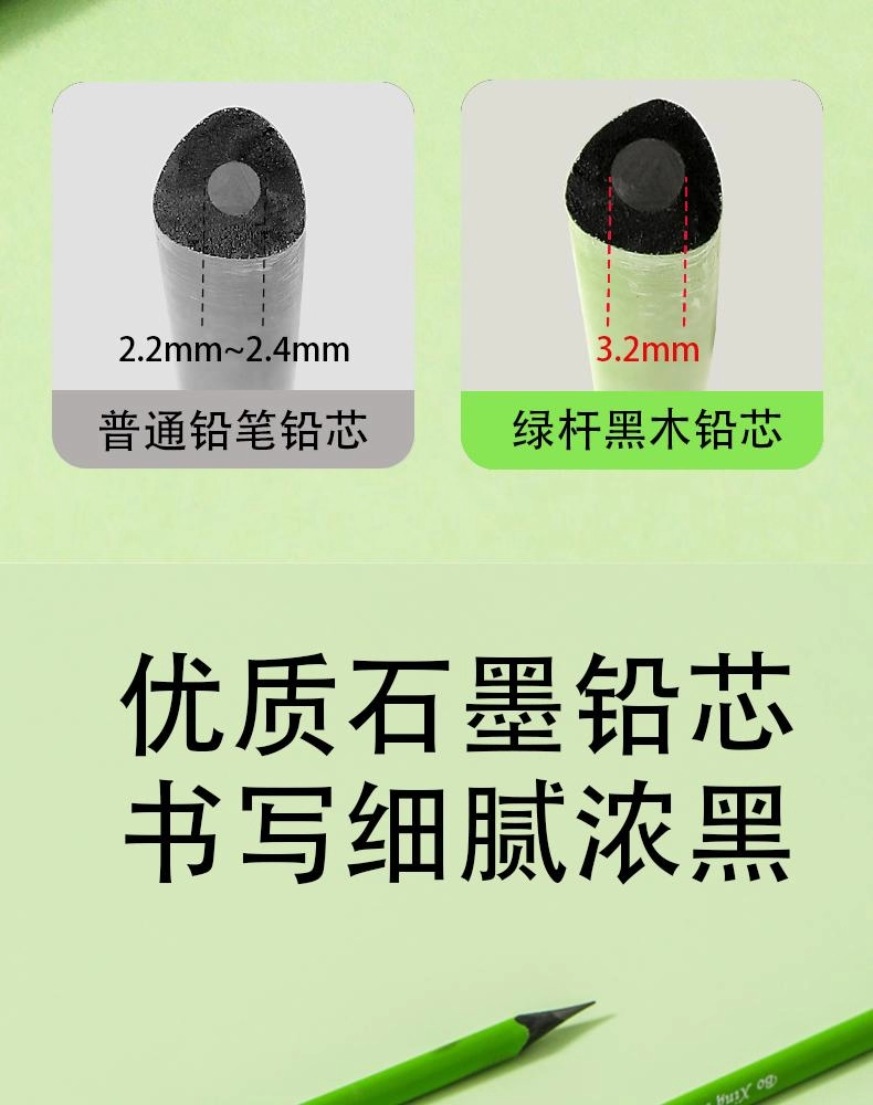 New Small Green Rod Eye-Protection Pencil Hb, Specially Designed for Primary School Students, Non-Toxic, Not Easy to Break, Thick Core, Special Pencil for Writing Homework