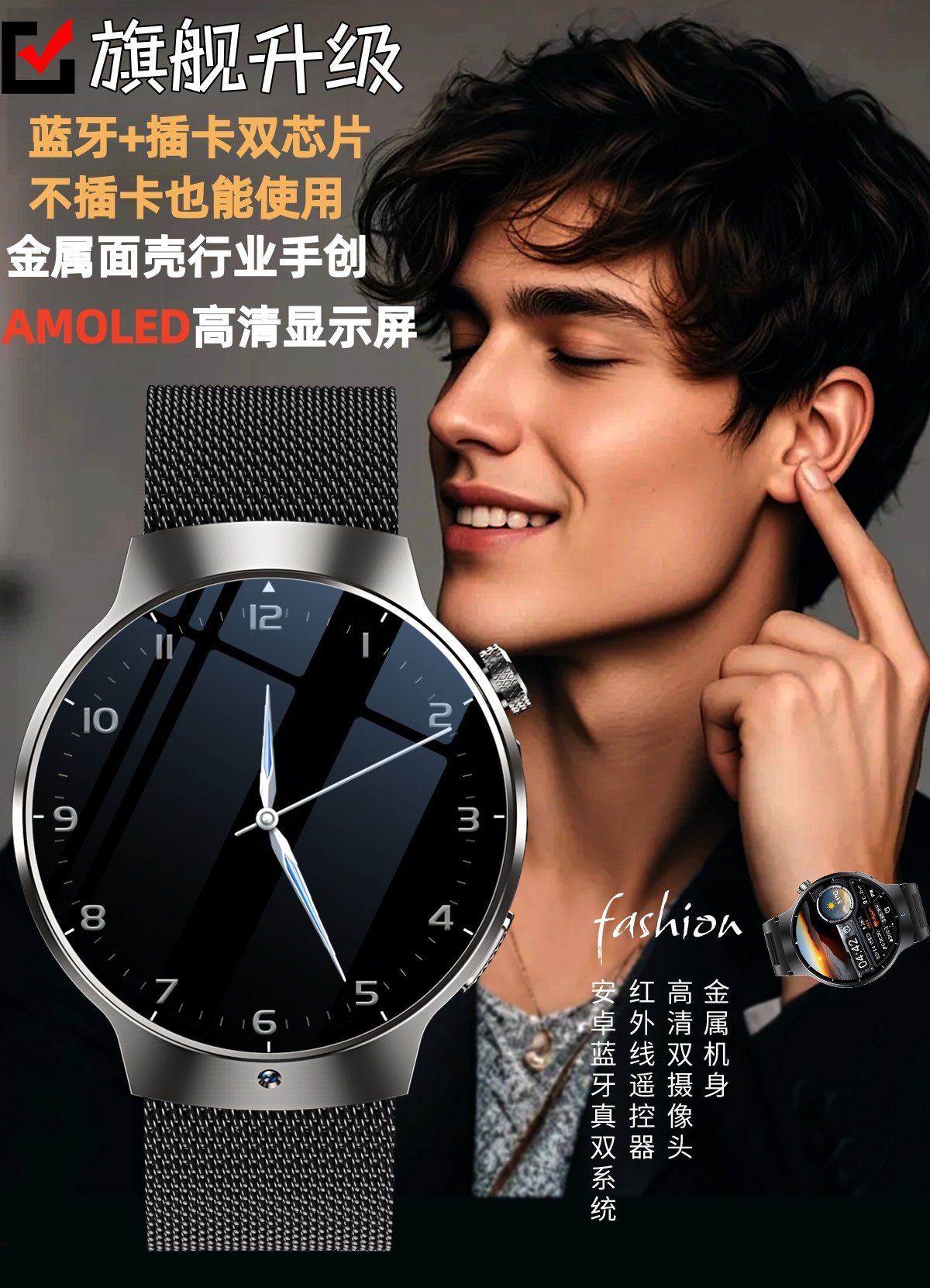 | Appearance Color | 【Black Leather Belt】Card Slot + Bluetooth Dual Mode + Infrared Remote Control + Dual Qq/Wechat + Any App Downloadable,【Black Milanese Steel Band】Card Slot + Bluetooth Dual Mode + Infrared Remote Control + Dual Qq/Wechat + Any App Downloadable,[Black Three-Baht Steel Belt] Card + Bluetooth Dual Mode + Infrared Remote Control + Dual Qq Wechat + Any Download App,【Silver Brown Leather】Card Slot + Bluetooth Dual Mode + Infrared Remote Control + Dual Qq/Wechat + Any App Downloadable,【Silver Milanese Steel Band】Card Slot + Bluetooth Dual Mode + Infrared Remote Control + Dual Qq/Wechat + Any App Downloadable,[Silver Three-Baht Steel Belt] Card + Bluetooth Dual Mode + Infrared Remote Control + Dual Qq Wechat + Any Download App |