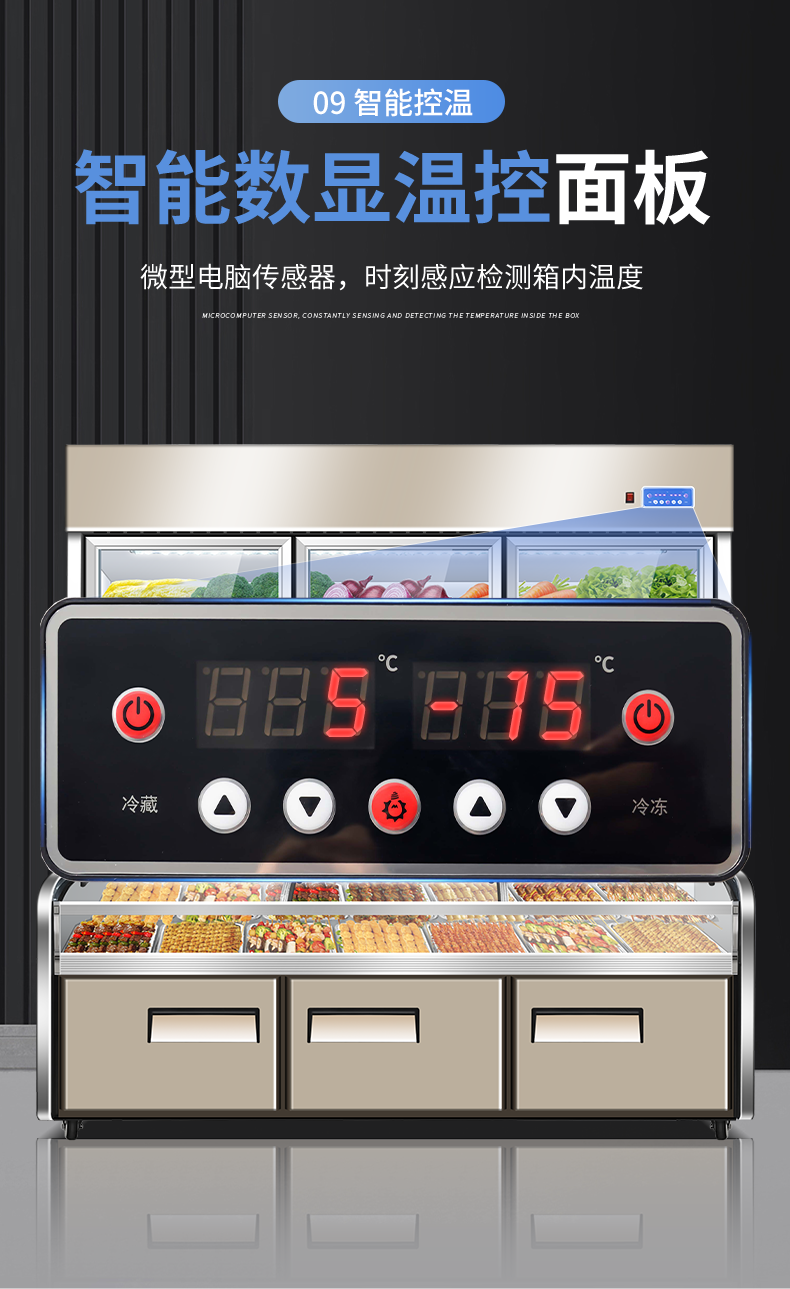 Haopu Lijia Spicy Hot Pot Display Cabinet, Ordering Cabinet, Commercial Three-Temperature Vegetable Barbecue Freezer, Refrigerated Cabinet, Fresh-Keeping Cabinet