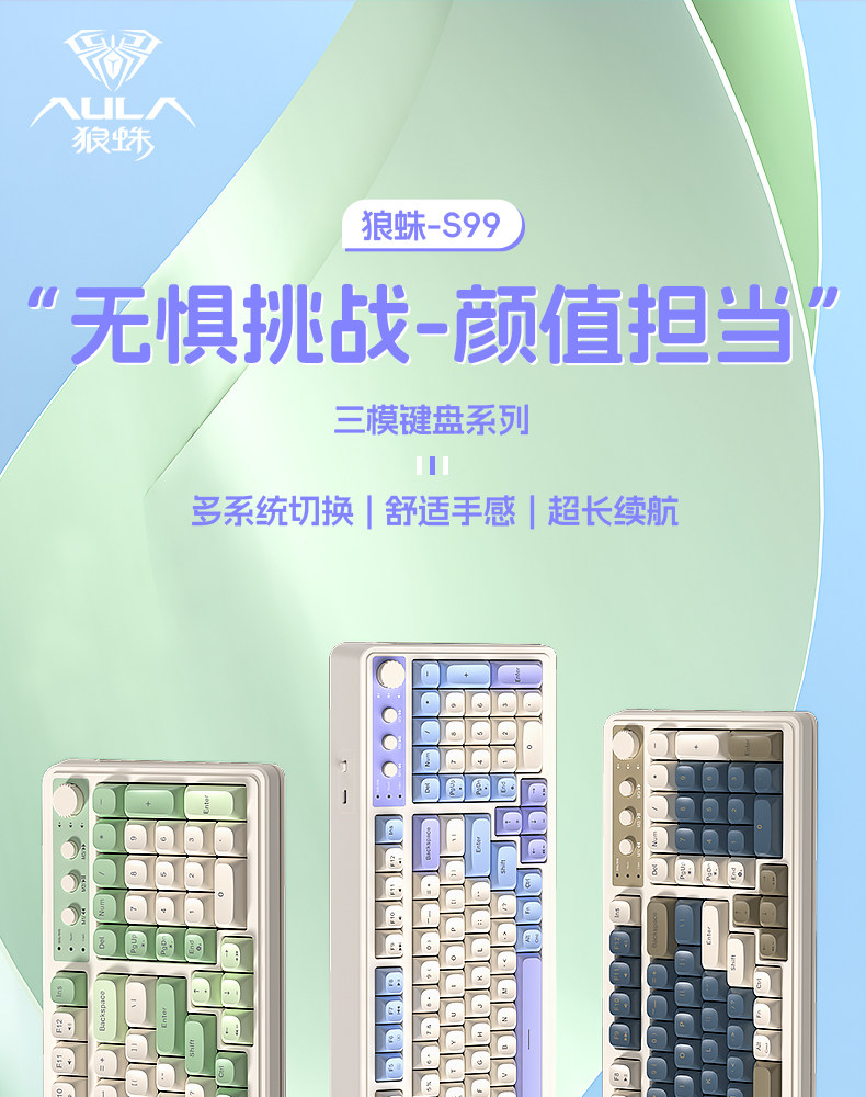 Wolf Spider S99Pro Three-Mode Wireless Keyboard Bluetooth Wired Set for Gaming and Office Use, Quiet Desktop and Laptop Computer