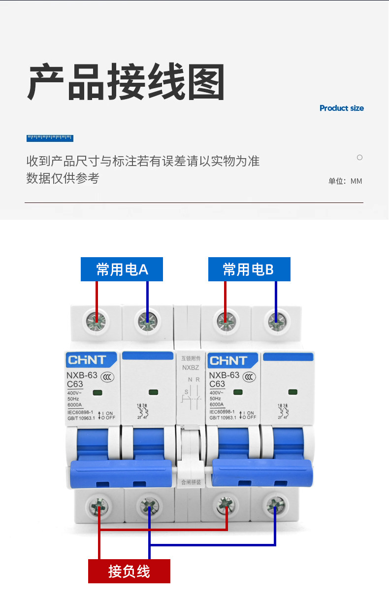 Chint Interlock Switch Air Switch 2P/3P/63A Dual Power Manual Dual-Wire Household Temporary Power Ups Emergency
